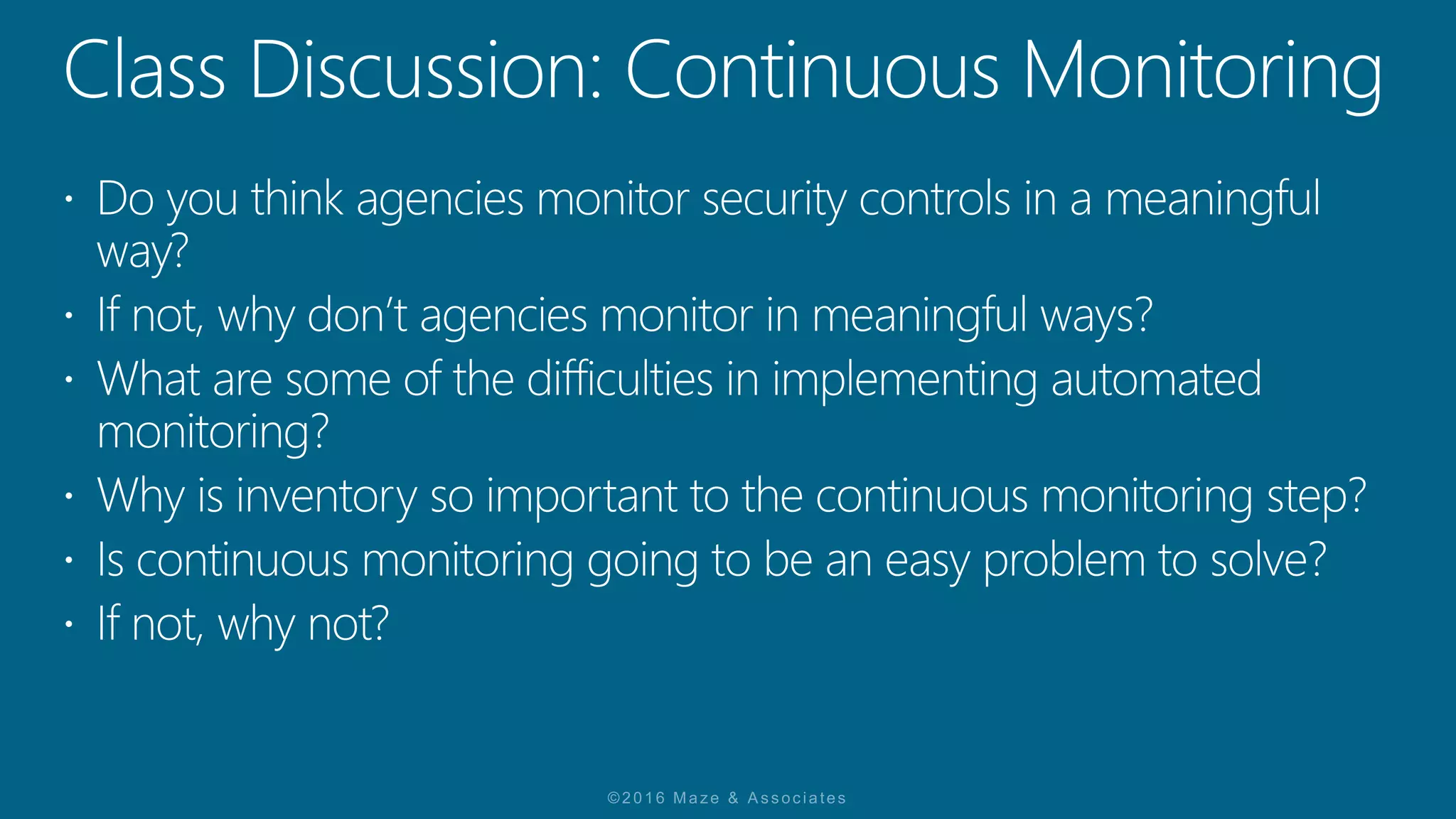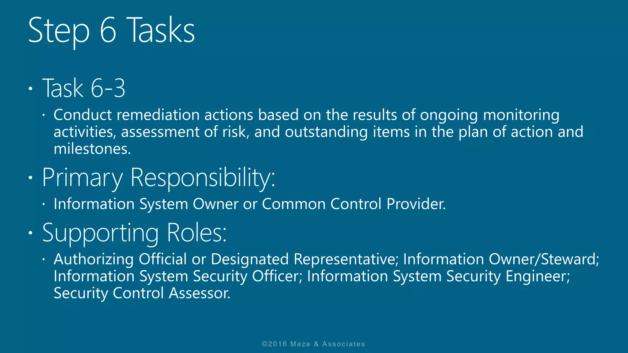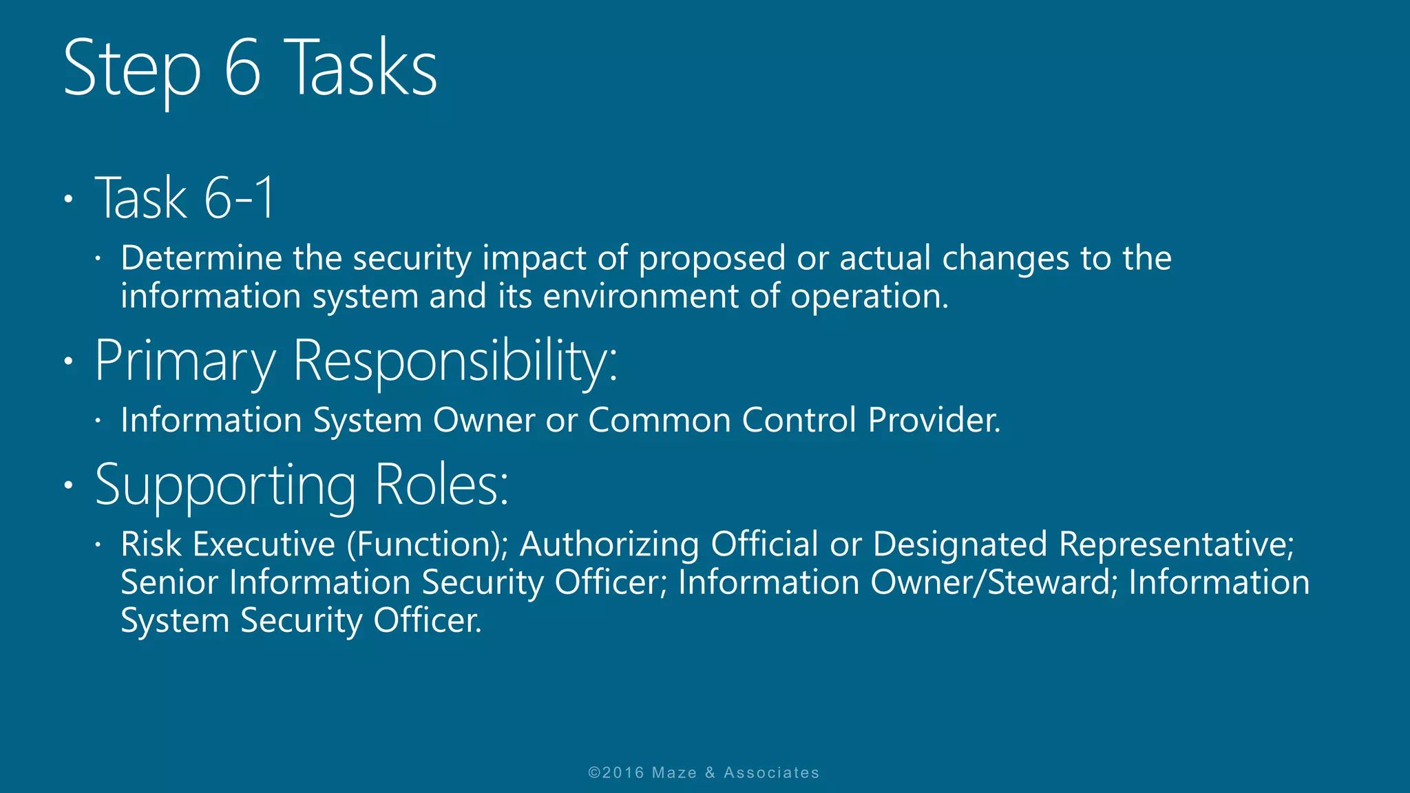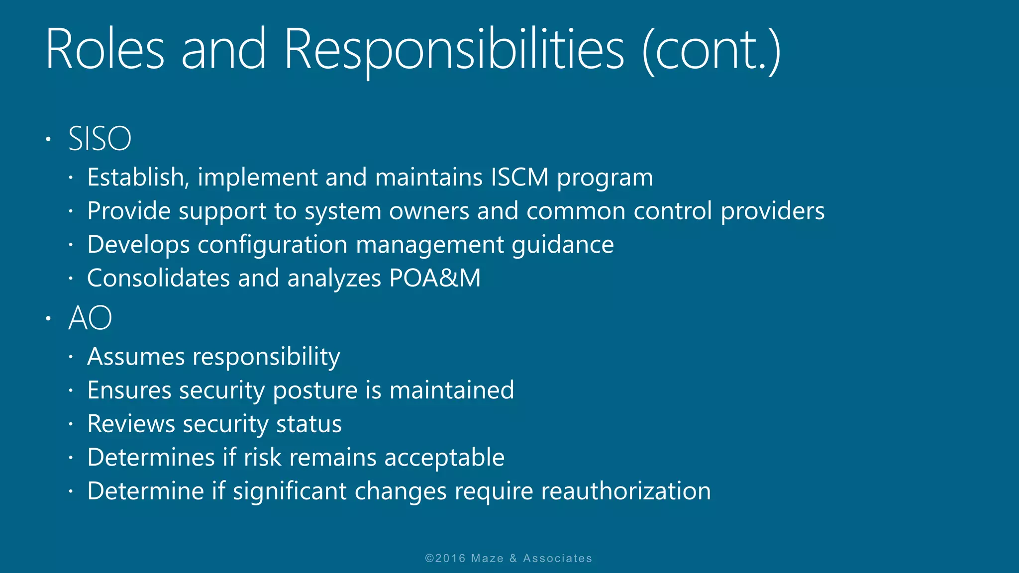 The document discusses the Risk Management Framework (RMF) process for authorizing information systems and maintaining ongoing security authorization. It outlines the six steps of the RMF process - Categorize, Select, Implement, Assess, Authorize, Monitor. The ultimate goal is to achieve ongoing authorization where the authorizing official has sufficient knowledge of the system's security state to determine if continued operation is acceptable based on ongoing risk assessments. Any changes to the system may change the risk, and the RMF process includes tasks for evaluating changes and their impact on risk.