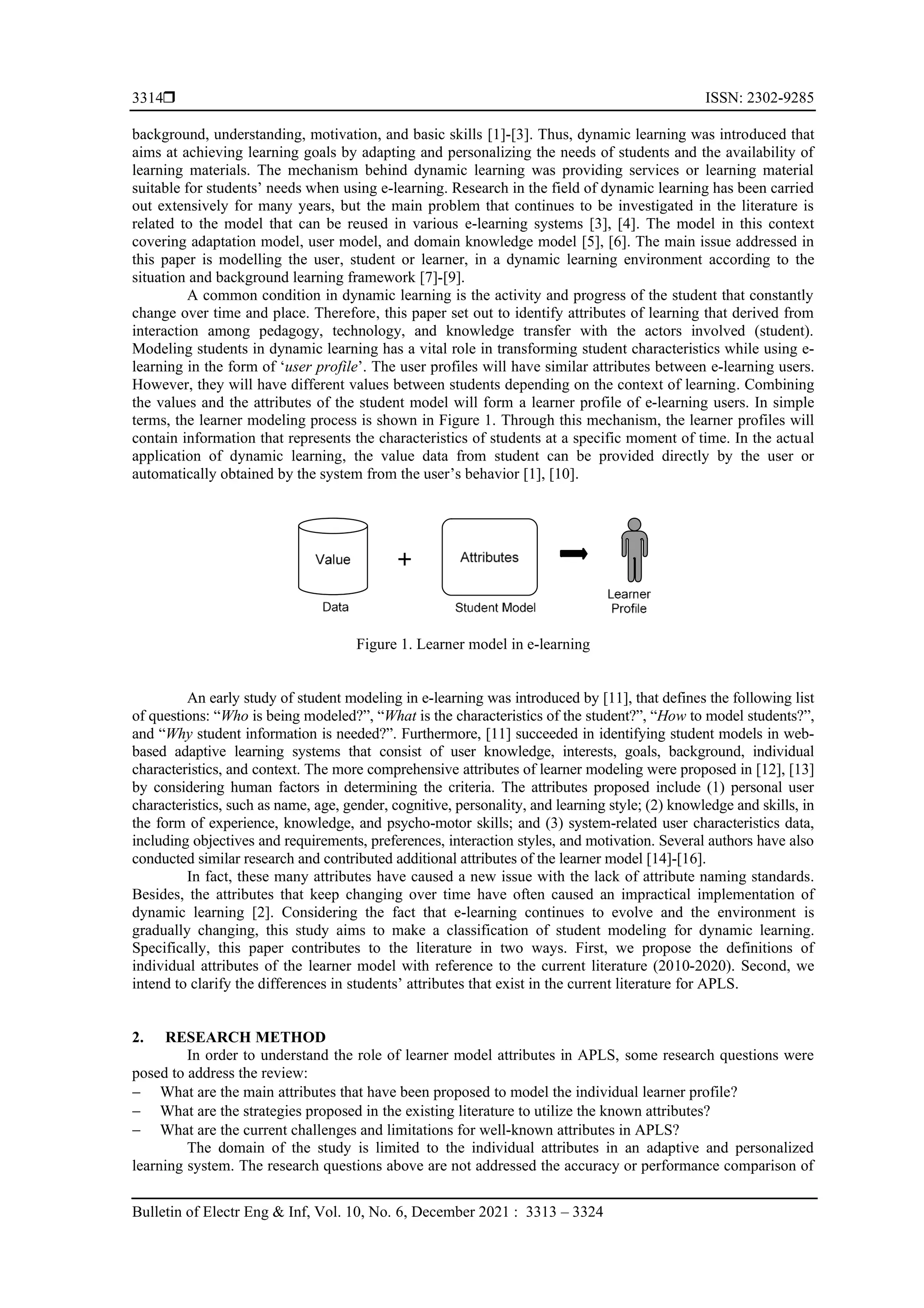The document discusses the development of adaptive and personalized e-learning systems, emphasizing the importance of individual learner attributes for effective customization. It highlights the evolution of e-learning through different generations, leading to the current dynamic learning environment that adapts to student needs based on situation and background characteristics. The study proposes a classification of learner model attributes, addressing existing challenges in standardization and practical implementation to enhance personalized learning experiences.