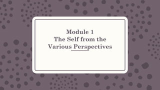 The document explores various philosophical perspectives on the self, discussing the significance of self-awareness and identity formation through different thinkers such as Socrates, Plato, and Descartes. It emphasizes the importance of understanding oneself in navigating life's complexities and achieving personal fulfillment. Additionally, the document examines sociological views on the self, particularly through the concepts of the looking-glass self and the social self, highlighting how societal interactions shape individual identity.