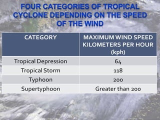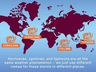 3) Typhoons, hurricanes, and cyclones are all the same weather phenomenon but have different names depending on their location in the Pacific or Atlantic Oceans.