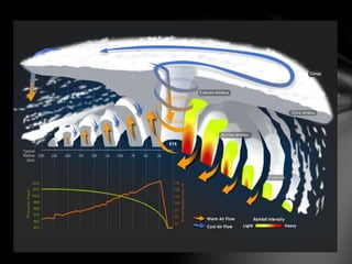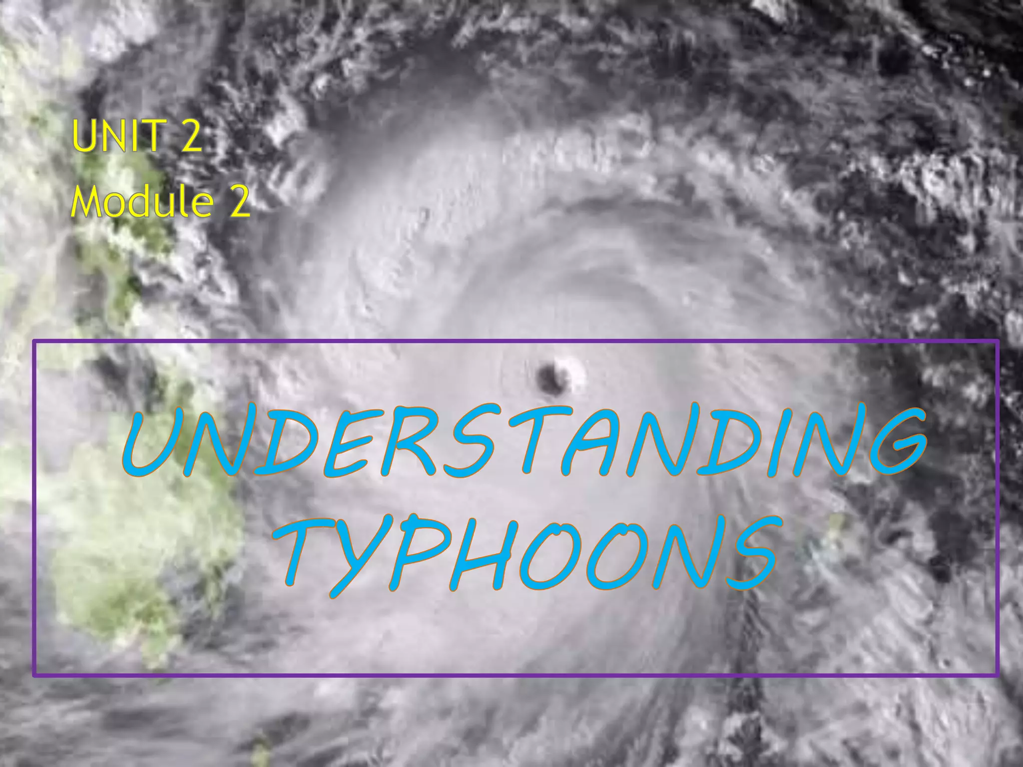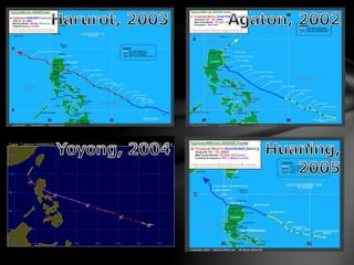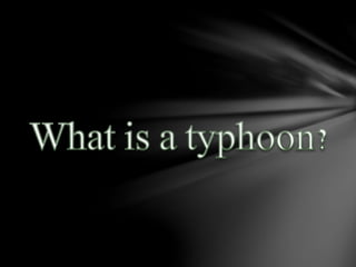 The document discusses typhoons, hurricanes, and cyclones. It explains that they are the same weather phenomenon, but are called different names depending on their geographic location. Typhoons occur in the northwest Pacific, hurricanes in the northeast Pacific and northern Atlantic, and cyclones in other areas. The document also provides details about the Philippine Atmospheric, Geophysical and Astronomical Services Administration's (PAGASA) storm warning signal system, including meteorological conditions and recommended actions for each warning level from 1 to 4.