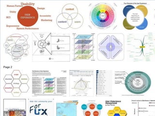 This document provides an overview of user experience design. It begins with a slide introducing the topic and defining user experience as encompassing all aspects of a customer's interaction with a company, its services, and products. It then discusses several user experience thought leaders including Don Norman and Jesse James Garrett. Norman describes user experience as meeting customer needs without fuss while Garrett defines it as designing anything with human experience and engagement as explicit goals. The document emphasizes that user experience requires a seamless merging of multiple disciplines. It also notes that startups are seeking generalist user experience professionals who can fill multiple roles. Overall, the document introduces key concepts in user experience design and thought leaders in the field while emphasizing the cross-disciplinary nature of creating