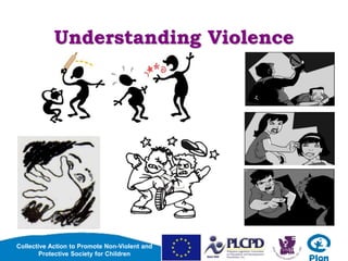 This document discusses violence and its effects. It defines violence as acts intended to hurt people, and lists different forms like physical, verbal, emotional, sexual, and economic abuse. It notes that violence can be perpetrated by individuals, groups, states, or the environment. The effects of violence are psychological/emotional like depression or fear, physical like injury, and social like distorted values. The document also discusses how violence is often intergenerationally transmitted as children who witness abuse learn that it is a normal way to resolve conflicts. It concludes that breaking this cycle requires practicing non-violent child discipline.