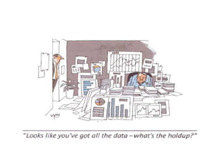 The document discusses data usage and online advertising. It notes that today over 8 billion web pages are indexed, 168 million DVDs of internet traffic are consumed, and 294 billion emails are sent. It emphasizes that people buy products, not technology or gimmicks. Effective data management allows advertisers to understand audiences and target them precisely. While click-through rates are low, case studies show targeting can significantly increase returns on investment. The document also notes that most internet users accept advertising as it funds free content, and prefer relevant, interest-based ads to irrelevant ones. Younger users have a more positive view of advertising than older users.