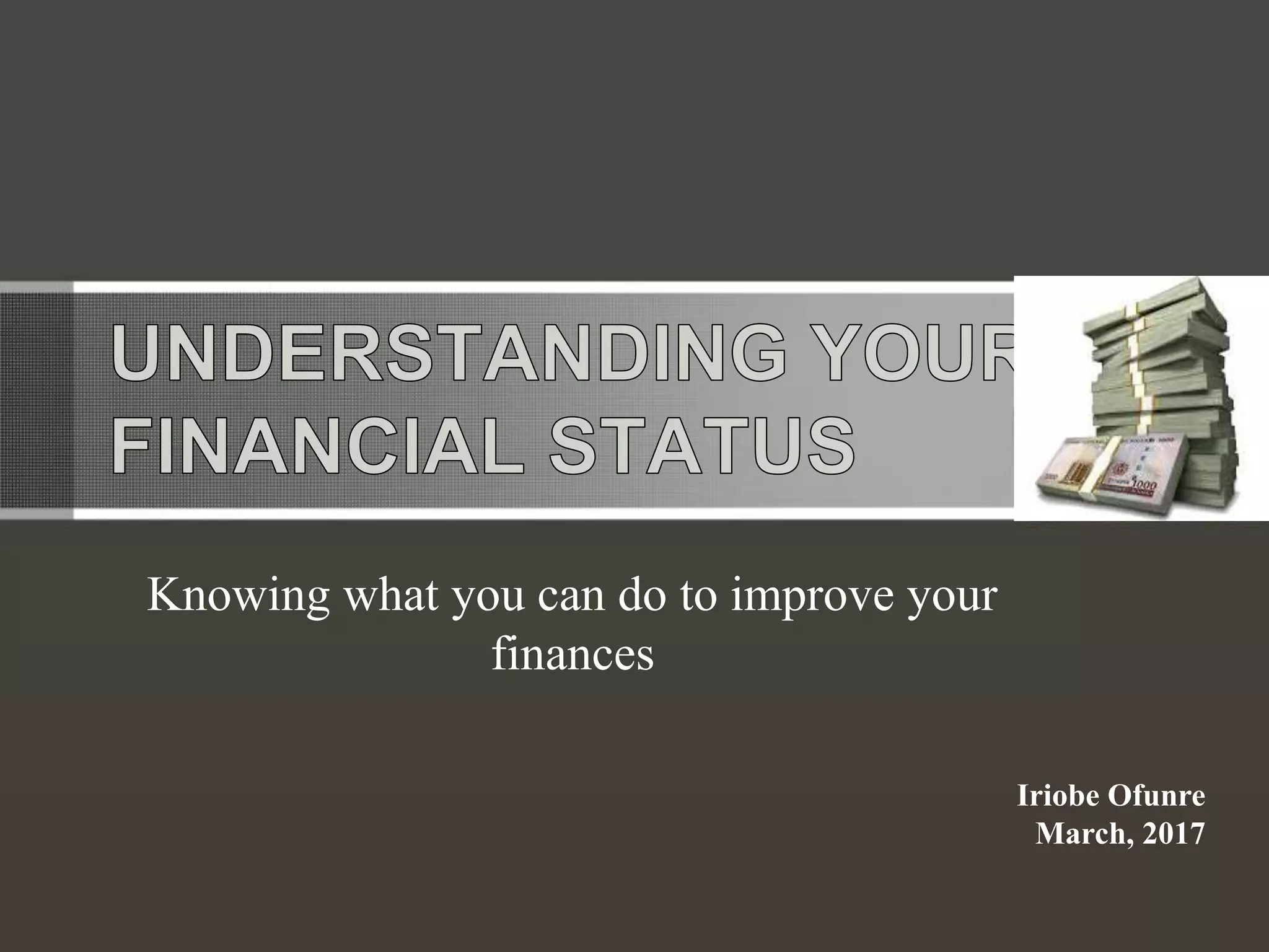 Understanding yourself is crucial for improving your financial status, as it is influenced by personal values, interests, and attitudes towards money. To enhance financial management, individuals should focus on self-discovery, increase financial literacy, save and invest wisely, and create a personal financial plan. The document emphasizes starting these practices early to benefit from time as a resource.