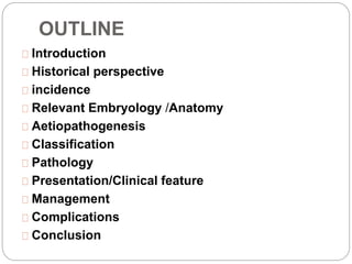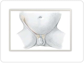 Undescended testes is one of the most common problems in pediatric surgery clinics. It occurs when one or both testes fail to descend into the scrotum. Left untreated, it can lead to testicular atrophy and infertility. The standard treatment is orchidopexy surgery to bring the testes into the scrotum. Early surgery is recommended before age 6 months to prevent damage to the testes. For intra-abdominal undescended testes, options include open orchidopexy, laparoscopic-assisted surgery, or microvascular transplantation of the testes into the scrotum. Prompt surgical treatment is aimed at reducing risks of infertility and testicular cancer.