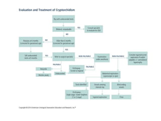 3. Diagnosis involves physical examination to locate the testis. Treatment is surgical orchiopexy between 6 months to 1 year of age to bring the testis into the sc