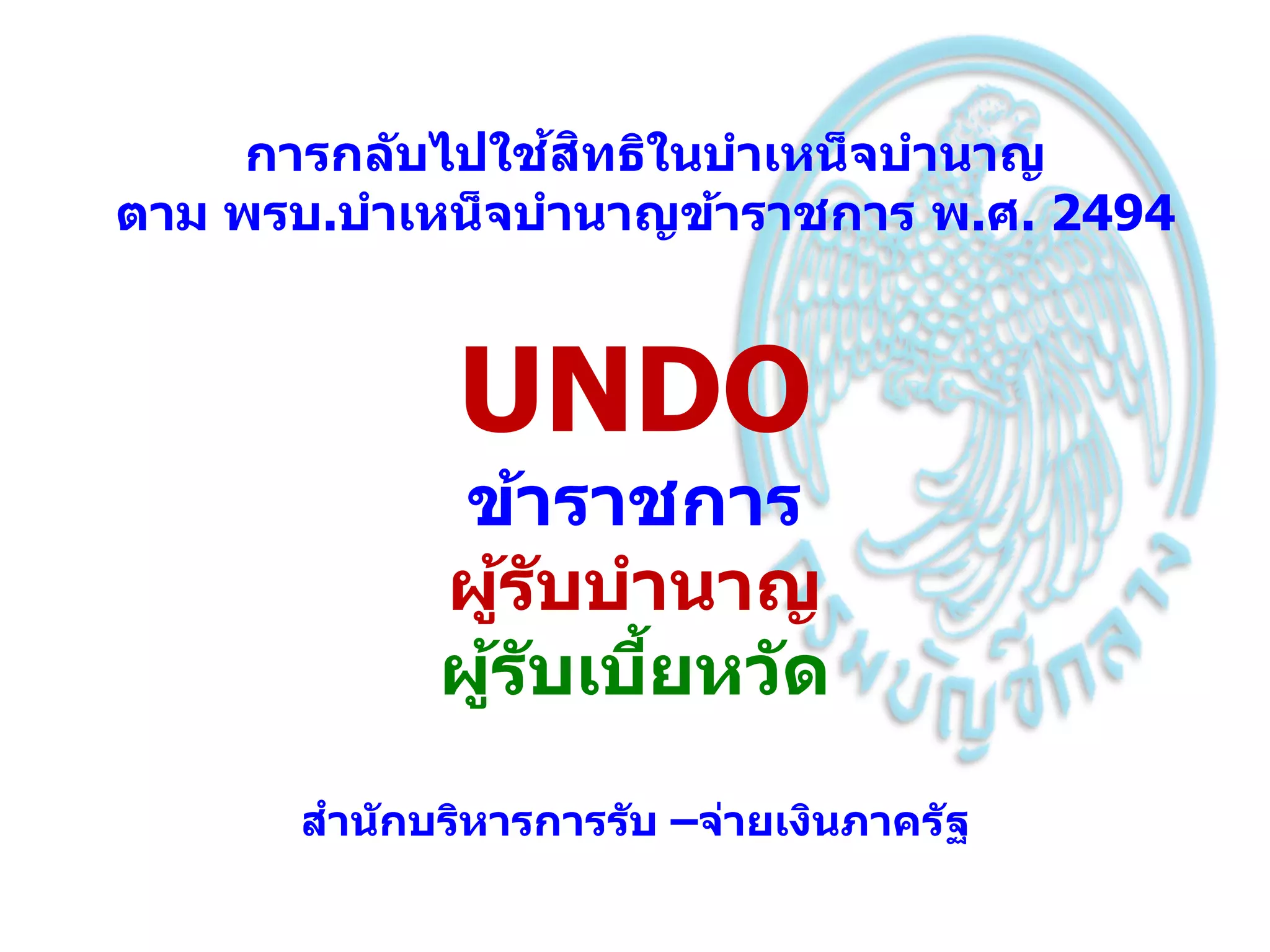 พิจารณาอีกรอบก่อนตัดสินใจ UNDO การกลับไปใช้สิทธิในบาเหน็จบานาญตาม พรบ.บาเหน็จบานาญข้าราชการ พ.ศ. 2494 สำหรับข้าราชการ ผู้รับบานาญ ผู้รับเบี้ยหวัด