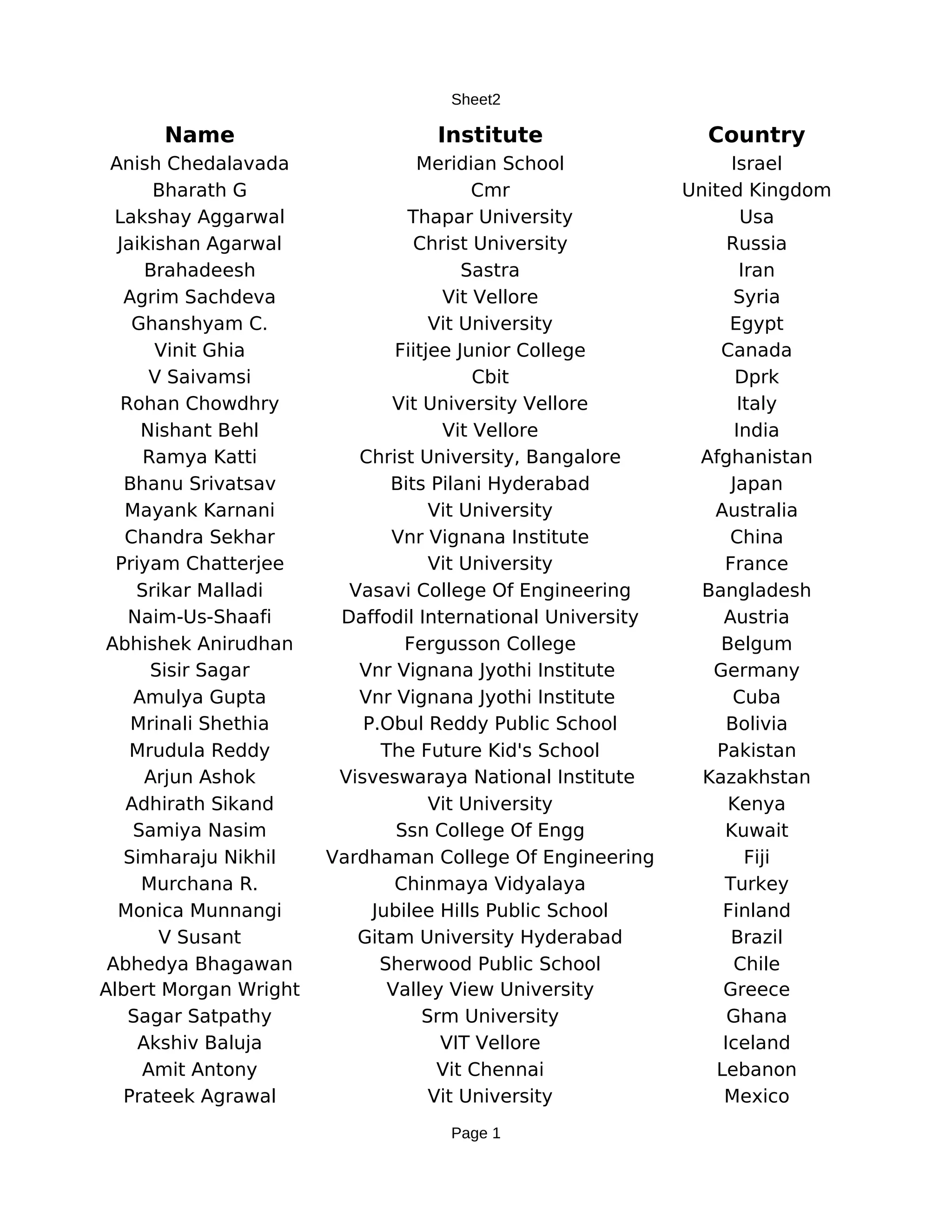 This document contains a list of over 200 schools, colleges, and universities from around the world along with the names of some students. The schools are from over 100 different countries and span all continents. Several Indian institutions like Christ University, VIT University, and Gitam University are listed along with international schools in countries such as the US, UK, Canada, Australia, and others.