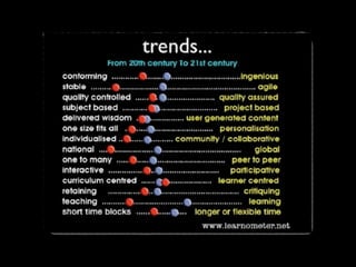 This document discusses the implications of digital technologies for teaching and learning. It notes that skills of collaboration will be more important than competitive skills in the digital age. Learners must be open to autonomous, assisted and collaborative learning. Education is being challenged by new media and technologies, requiring rethinking who, what, where and when learning occurs. Digital learning pedagogy demands a different instructional design approach and teaching methodology, requiring new skills from both teachers and students.