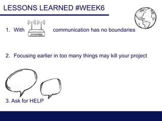 1. The document discusses marketing channels for an organization including social media, their own website, and email. It provides data on the impact, targetability, effort, time, and cost of each channel. 2. Several hypotheses are presented regarding the main marketing channels being social media, their own website, or email. Metrics are provided to confirm each hypothesis. 3. An update on landing page views, uniques, and conversions is reported. Advice from an interview with Anna is also mentioned. The document concludes by stating guerilla marketing is a strategy but does not elaborate further.