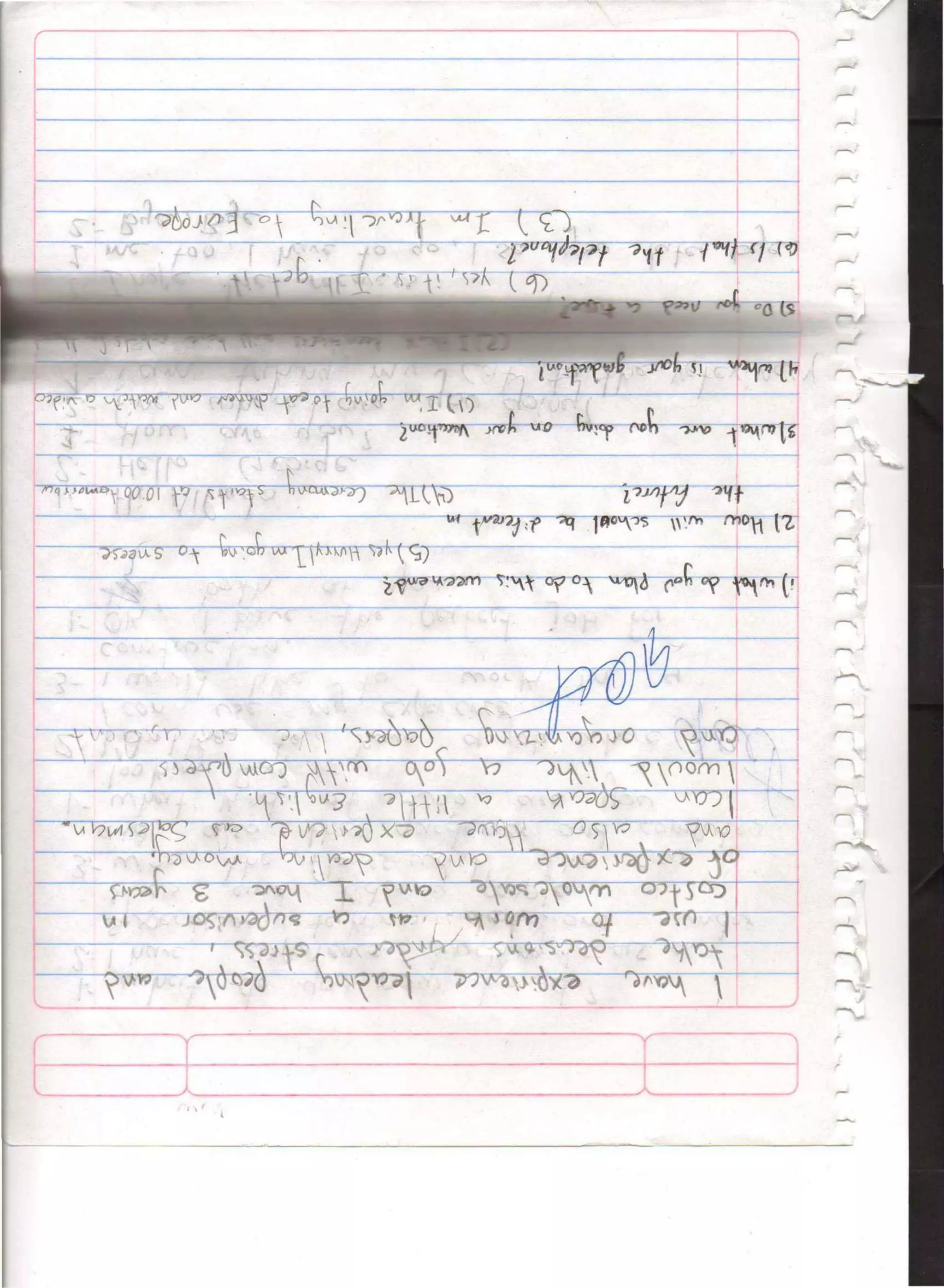 The document appears to be notes from a listening activity about jobs. It includes notes on Julia and Carlos discussing their new jobs, specifically what they like and dislike about them. It also notes that Carlos's new job has more responsibility and variety than his old one. The notes then discuss key words related to different types of jobs and compensation. It lists jobs and potential advantages and disadvantages of each. Finally, it ranks the interest level of some jobs from most to least interesting.
