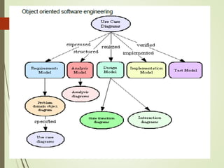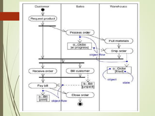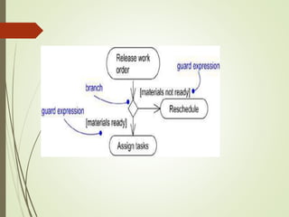 The document provides an introduction to the Unified Modeling Language (UML). It discusses the key principles of modeling and an overview of UML. The UML is a standard language for writing software blueprints and can be used to visualize, specify, construct, and document software systems. The UML has building blocks like classes, objects, use cases and relationships. It consists of diagrams like class diagrams, sequence diagrams, and state machine diagrams. The UML addresses multiple views of a system including use case, design, interaction and implementation views.