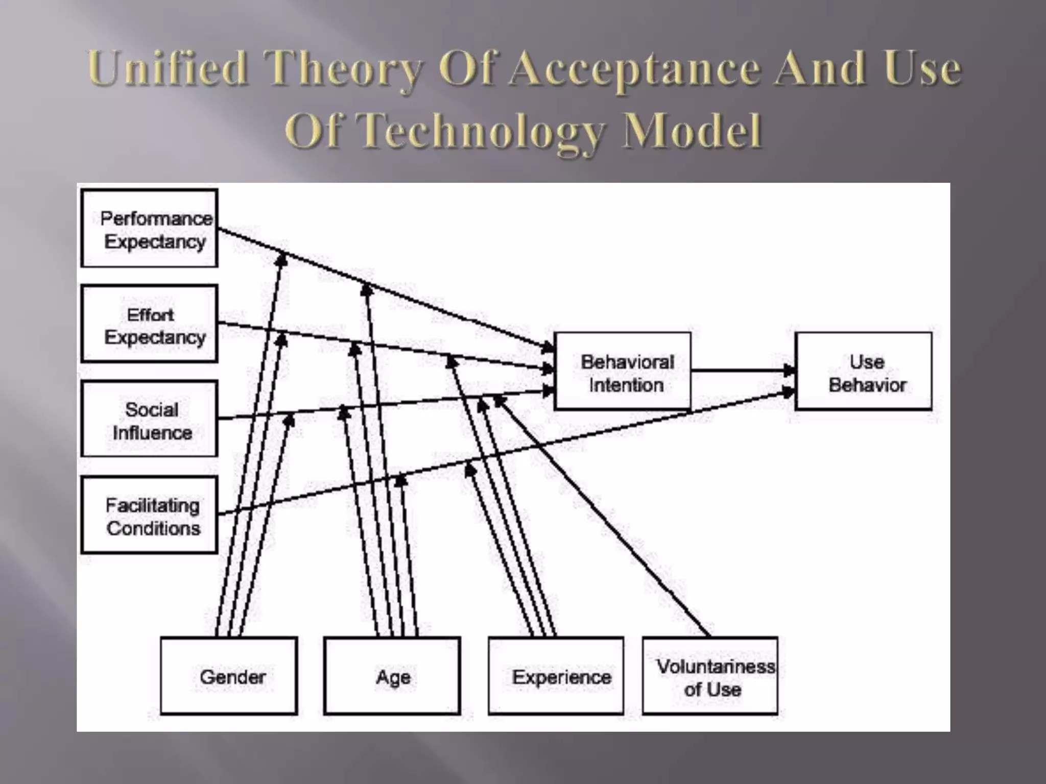 The UTAUT model aims to explain user intentions to use information systems and subsequent usage behavior. It was developed by reviewing and consolidating eight previous models of technology acceptance. The UTAUT model proposes four key constructs that influence usage intention and behavior: performance expectancy, effort expectancy, social influence, and facilitating conditions. Gender, age, experience, and voluntariness of use are hypothesized to moderate the impact of the four constructs. Several studies have applied the UTAUT model to domains such as mobile service adoption, social media adoption, and computer use frequency. Some researchers have also extended the UTAUT model by adding additional constructs. However, others have critiqued the UTAUT model for having many independent variables and