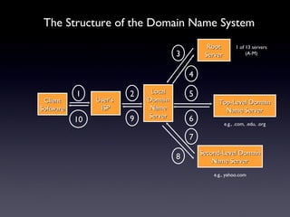 The document discusses domain name disputes and trademark law. It summarizes key cases that helped establish the rules and procedures for resolving domain name disputes, including the Anticybersquatting Consumer Protection Act (ACPA) and Uniform Domain Name Dispute Resolution Policy (UDRP). It also summarizes some specific domain name dispute cases, such as how minimum contacts requirements have been applied in international disputes.