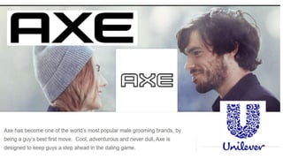 Unilever is one of the world's leading suppliers of fast-moving consumer goods, operating in around 100 countries with over 400 brands. It was founded in 1930 through the merger of Dutch and British companies. Unilever owns several billion Euro brands, including Axe and Dove. Axe produces men's grooming products and markets to young adult males, while Dove aims to boost women's self-esteem by celebrating real beauty in all shapes and sizes. Both brands successfully engage their target audiences through personalized marketing strategies and messages.