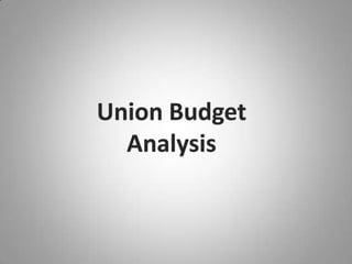 The document analyzes economic surveys and union budgets from 2010-2013, noting planned and non-planned expenditures that increased annually by 15-18% on average. Key sectors like infrastructure, capital goods, and pharmaceuticals saw positive impacts from budget allocations, while others like automobiles, FMCG and oil/gas saw neutral or negative impacts. The conclusion is that the 2012-2013 budget focused more on fiscal deficits than growth, but assumptions depend on world economic conditions and oil prices.