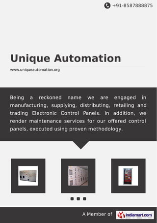 Unique Automation manufactures, supplies, distributes, retails, and trades electronic control panels. It offers products like HT panels, LT panels, VFD panels, and provides maintenance services. The company aims to achieve maximum client satisfaction by providing a quality range of control panels and delivering orders on time. It has a large client base due to its unmatched range of electrical control panels.