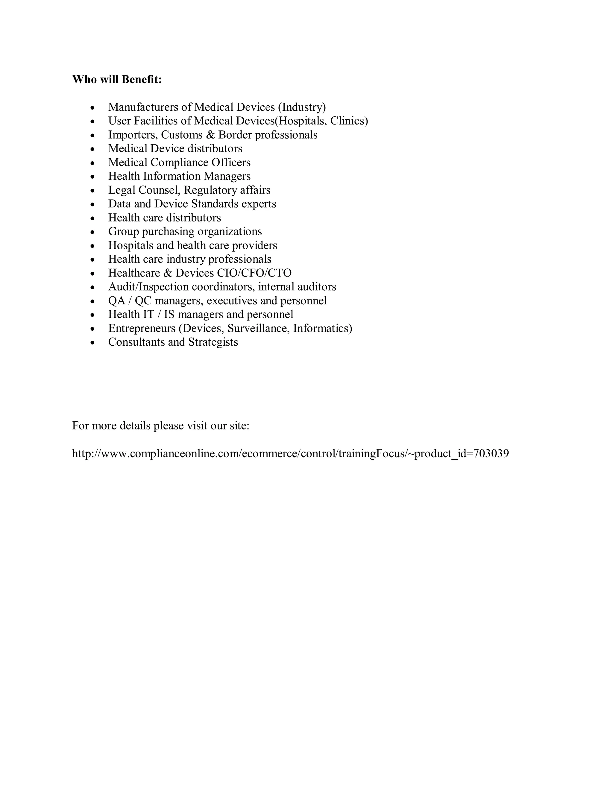 The document summarizes an upcoming webinar about Unique Device Identification (UDI) rules and requirements for medical device industries, hospitals, and providers. The webinar will cover current and upcoming FDA UDI policies, including timelines and guidance documents. It will explain UDI codes and standards, requirements for different industry roles, and how organizations should prepare to comply with increasing regulatory complexity around medical device identification and post-market surveillance. The webinar aims to help participants from various medical device and healthcare roles understand and conform to evolving UDI regulations.