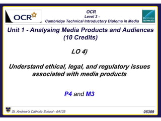 This document provides an overview of various regulatory and ethical issues related to magazine publishing. It discusses concepts like representation, censorship, privacy, offensive content, and the roles of regulatory bodies like IPSO in enforcing standards around accuracy, privacy, harassment and more. It also addresses copyright, complaints procedures, intellectual property protections, and how data protection laws and advertising standards apply to magazines.