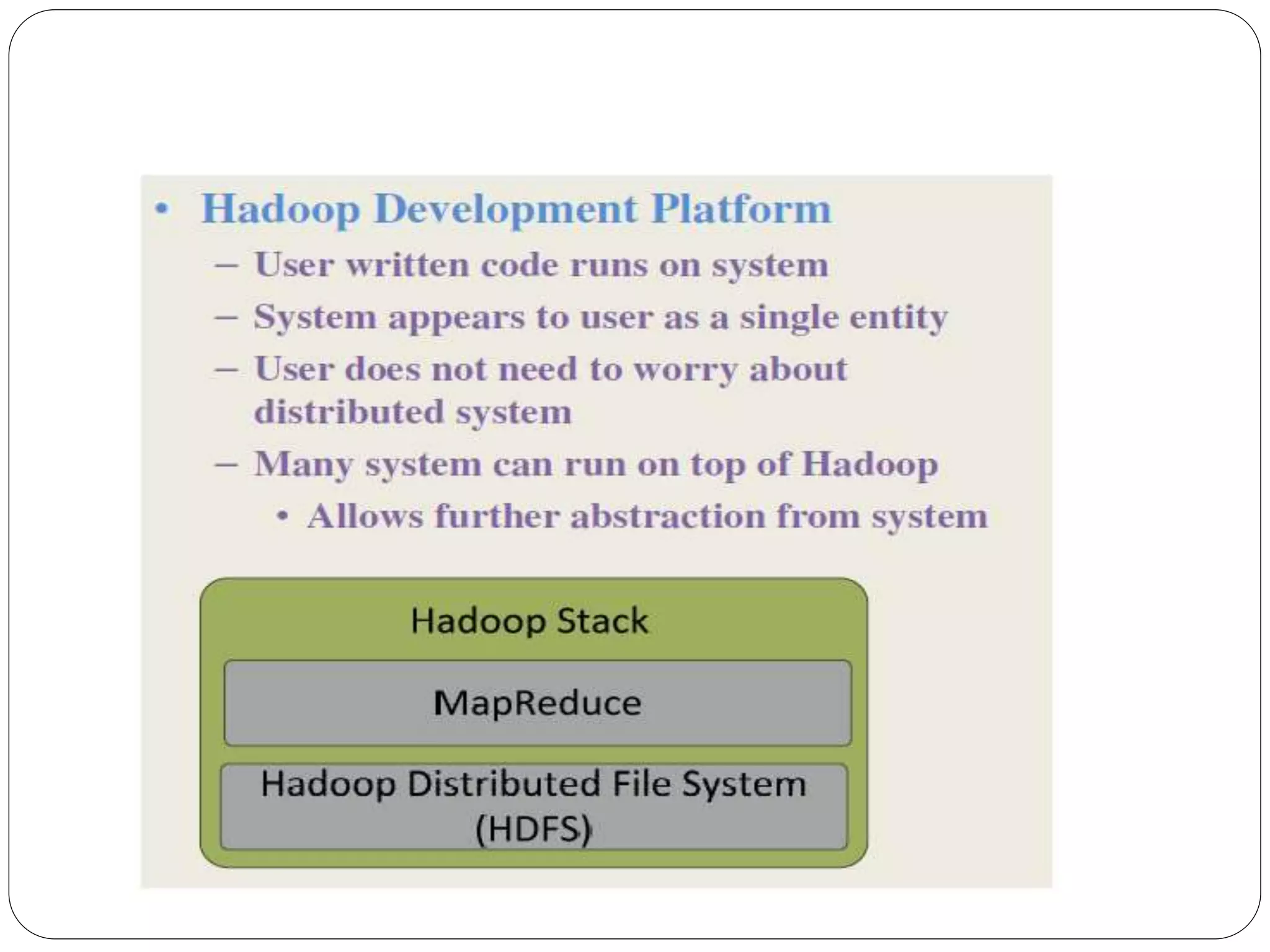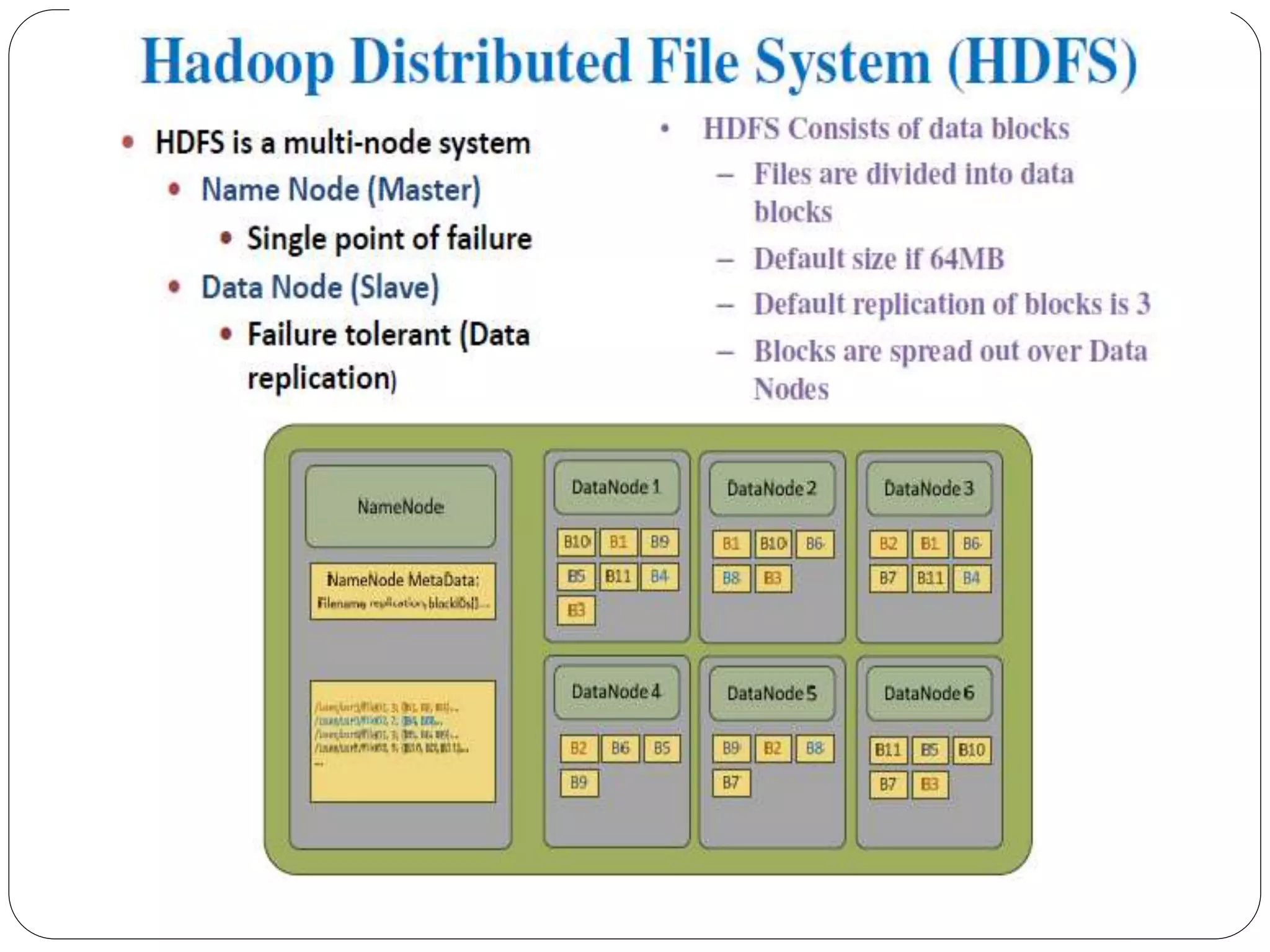 The document provides an introduction to big data, including definitions and characteristics. It discusses how big data can be described by its volume, variety, and velocity. It notes that big data is large and complex data that is difficult to process using traditional data management tools. Common sources of big data include social media, sensors, and scientific instruments. Challenges in big data include capturing, storing, analyzing, and visualizing large and diverse datasets that are generated quickly. Distributed file systems and technologies like Hadoop are well-suited for processing big data.