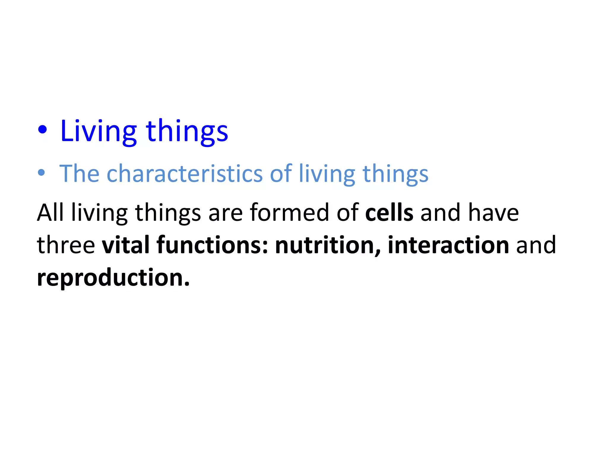 This document provides an overview of living things, specifically plants. It explains that all living things are made of cells and have three vital functions: nutrition, interaction, and reproduction. It describes the structure of living things from single-celled organisms to multicellular organisms made of tissues, organs, and systems. The document defines plants as multicellular organisms that produce their own food through photosynthesis, do not move but react to changes, and most reproduce using flowers and seeds. It also outlines plants' nutrition process of absorbing water, minerals, carbon dioxide and making carbohydrates using sunlight.