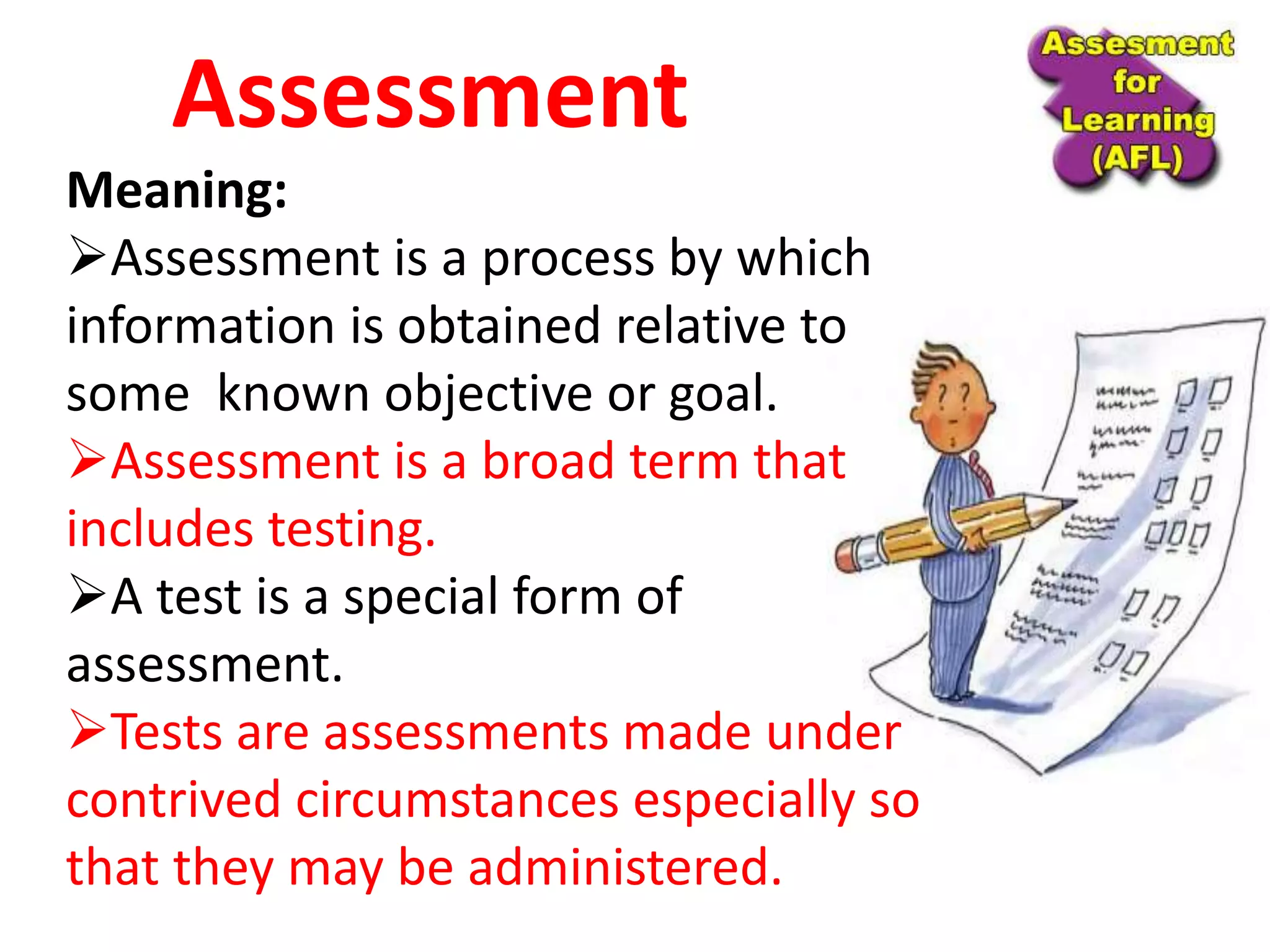 This document discusses the concept of assessment for learning. It provides definitions of assessment from various scholars that describe assessment as a process for gathering information about student learning to improve instruction and further learning. The nature of assessment is described as being embedded in the learning process and closely interconnected with curriculum and instruction. Assessment plays a role in informing teaching, guiding students, and checking progress. It has multiple functions including monitoring progress, decision making, screening, diagnosis, and evaluating instructional programs.