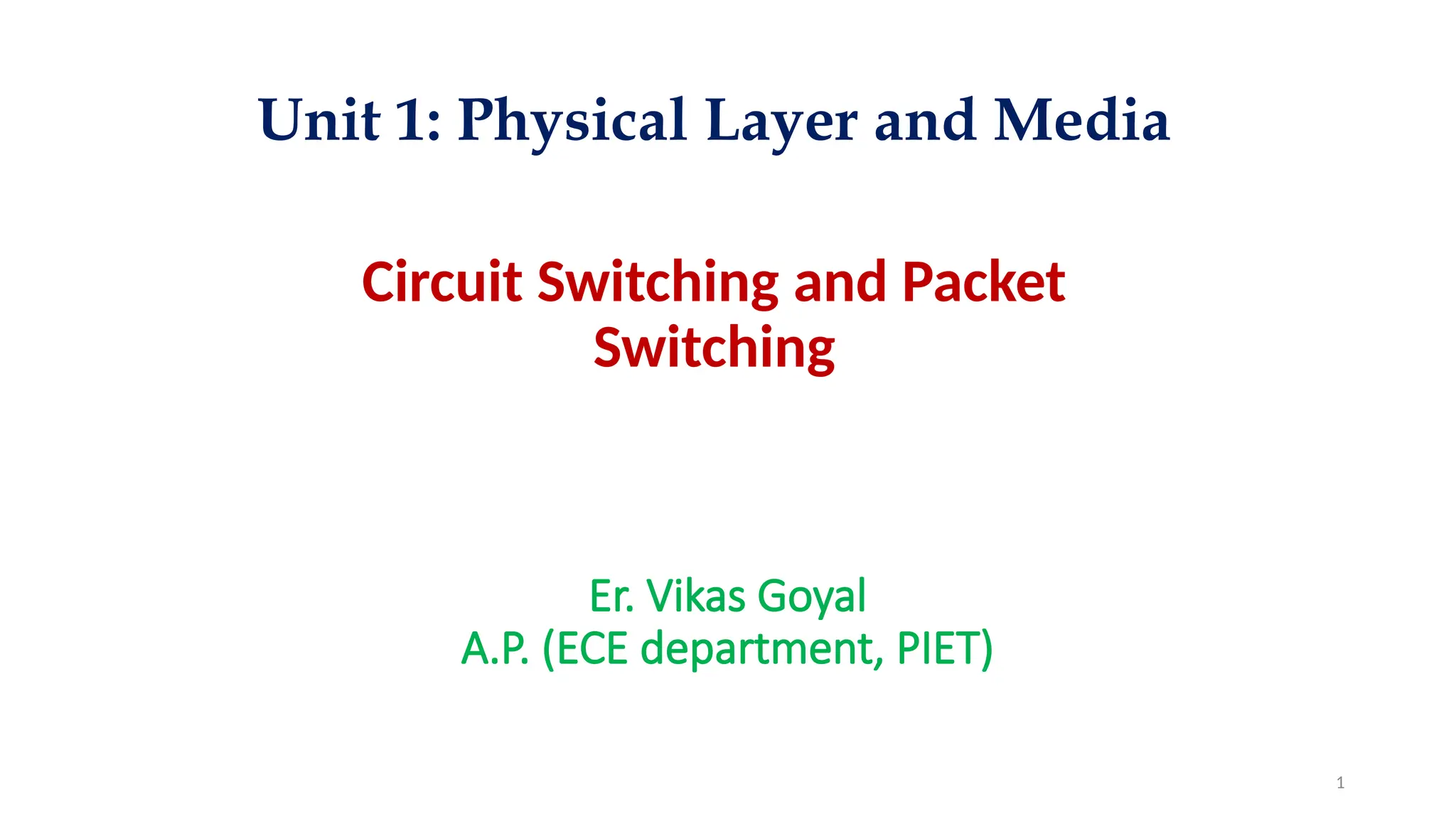 The document covers the principles of circuit switching and packet switching in communication networks. Circuit switching establishes a dedicated communication path for the entire duration of a connection, while packet switching divides data into packets that can be transmitted independently without reservation of resources. It also discusses virtual-circuit networks, which combine aspects of both techniques, including setup and teardown phases along with dynamic resource allocation.