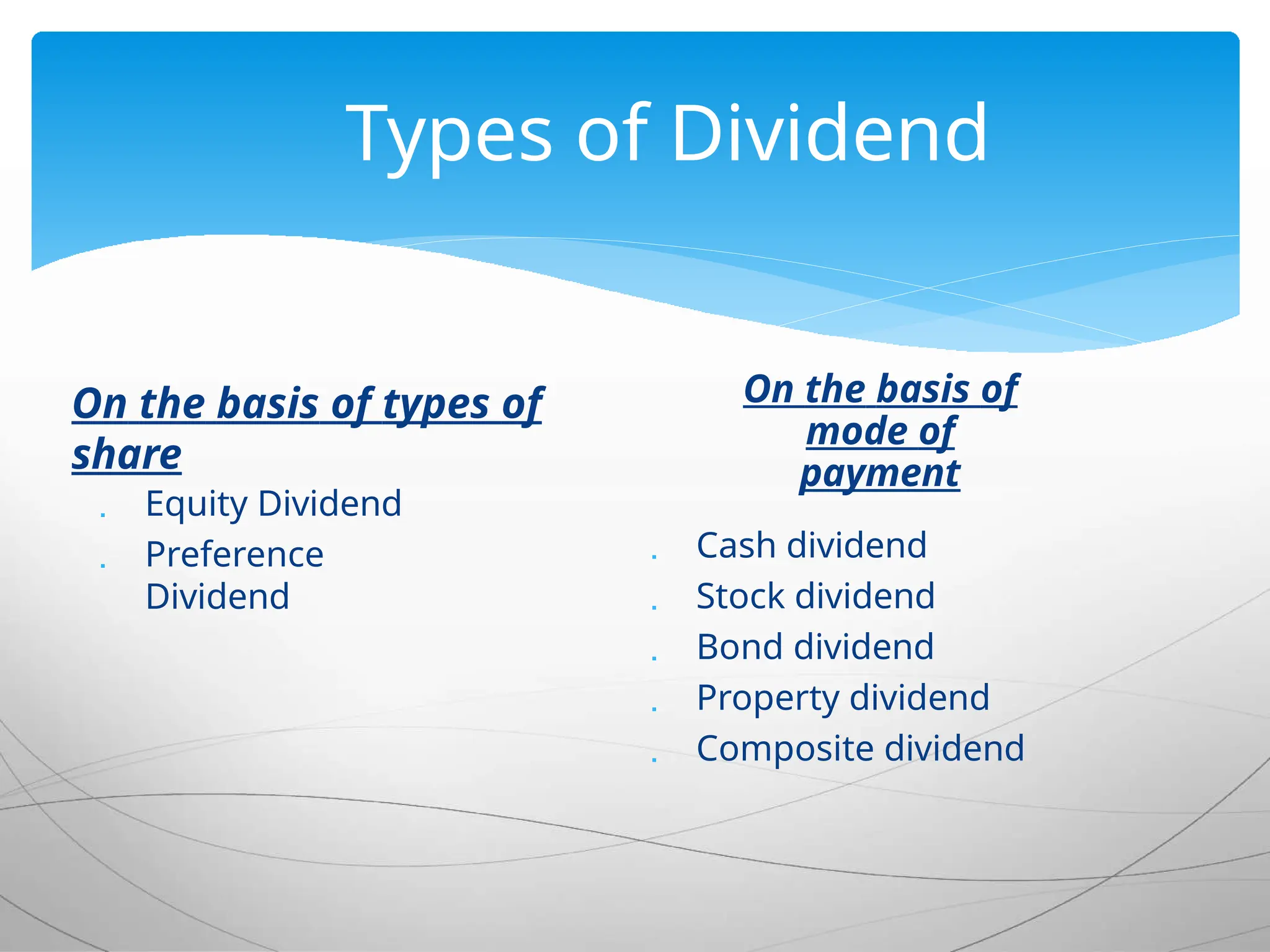 The document delves into the concept of dividends, categorizing them based on types of shares and payment methods, while explaining the implications of dividend policies on firm valuation. It presents several dividend theories, including relevance theories (Walter's and Gordon's models) which assert dividends influence share value, and irrelevance theories (Modigliani-Miller) which claim dividend decisions do not impact firm value. Additionally, it contrasts the effects of different dividend payout ratios on market share value for growing, normal, and declining firms.