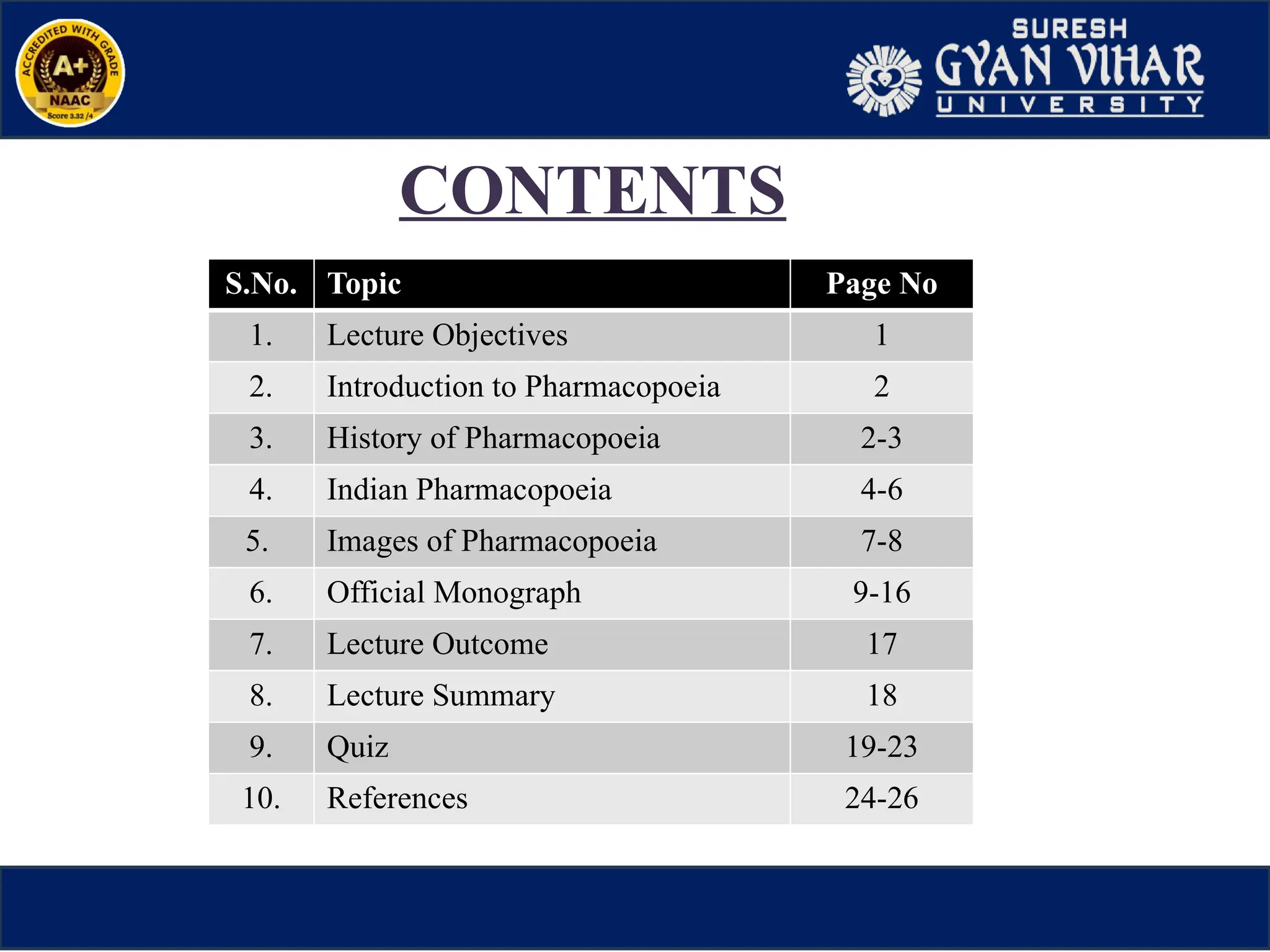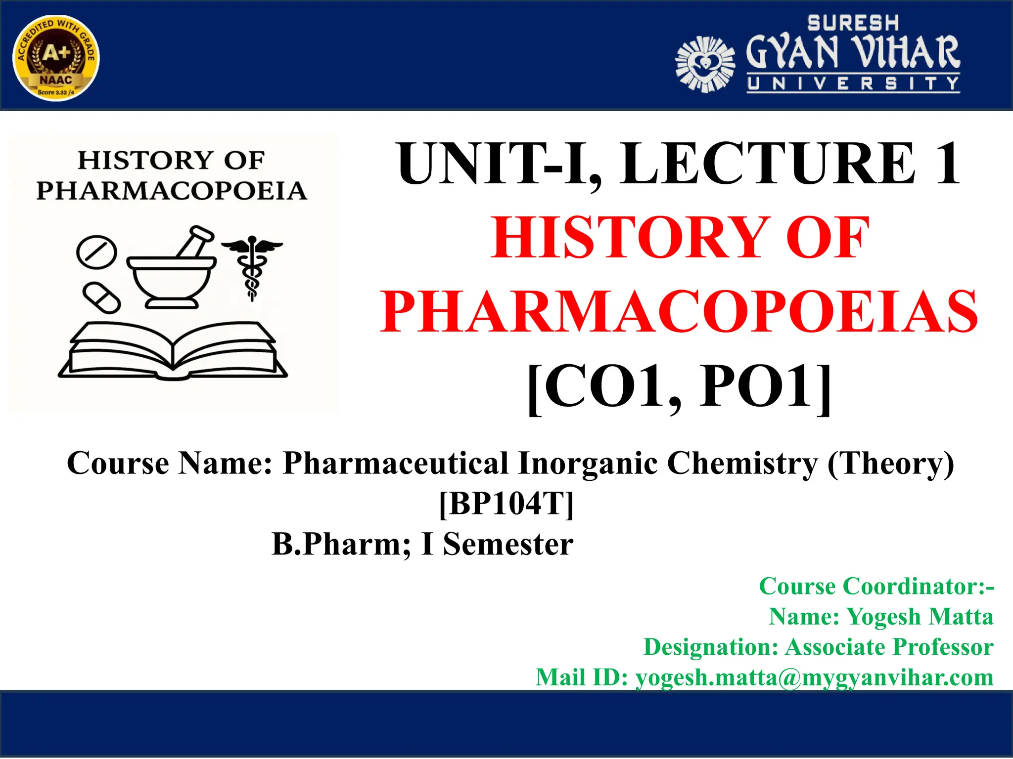 General and specific matters relating to individual drugs are published in the form of a book called a Pharmacopoeia.