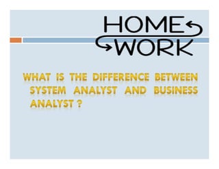 3. The role and responsibilities of a business analyst are outlined as investigating business situations, identifying options to improve systems, defining requirements, and ensuring information systems meet business needs.