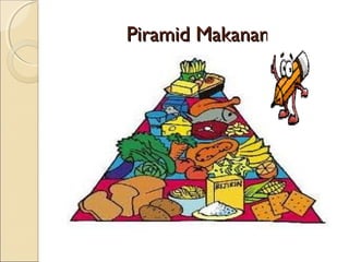 Dokumen ini membahas tentang piramid makanan yang mencakup berbagai kategori makanan seperti karbohidrat, protein, vitamin, dan lemak. Selain itu, terdapat teka-teki tentang beberapa buah seperti nanas, rambutan, jambu batu, dan durian. Informasi ini disampaikan secara interaktif kepada pembaca.