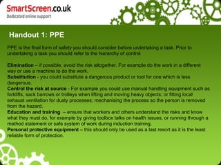 PPE should only be used as a last resort according to the hierarchy of control. It is the least reliable form of protection. All tools used for work purposes must be properly maintained and stored securely when not in use. Power tools can cause noise and vibration, so risk assessments should be conducted to comply with the Control of Noise at Work and Control of Vibration at Work Regulations if exposure limits could be exceeded.
