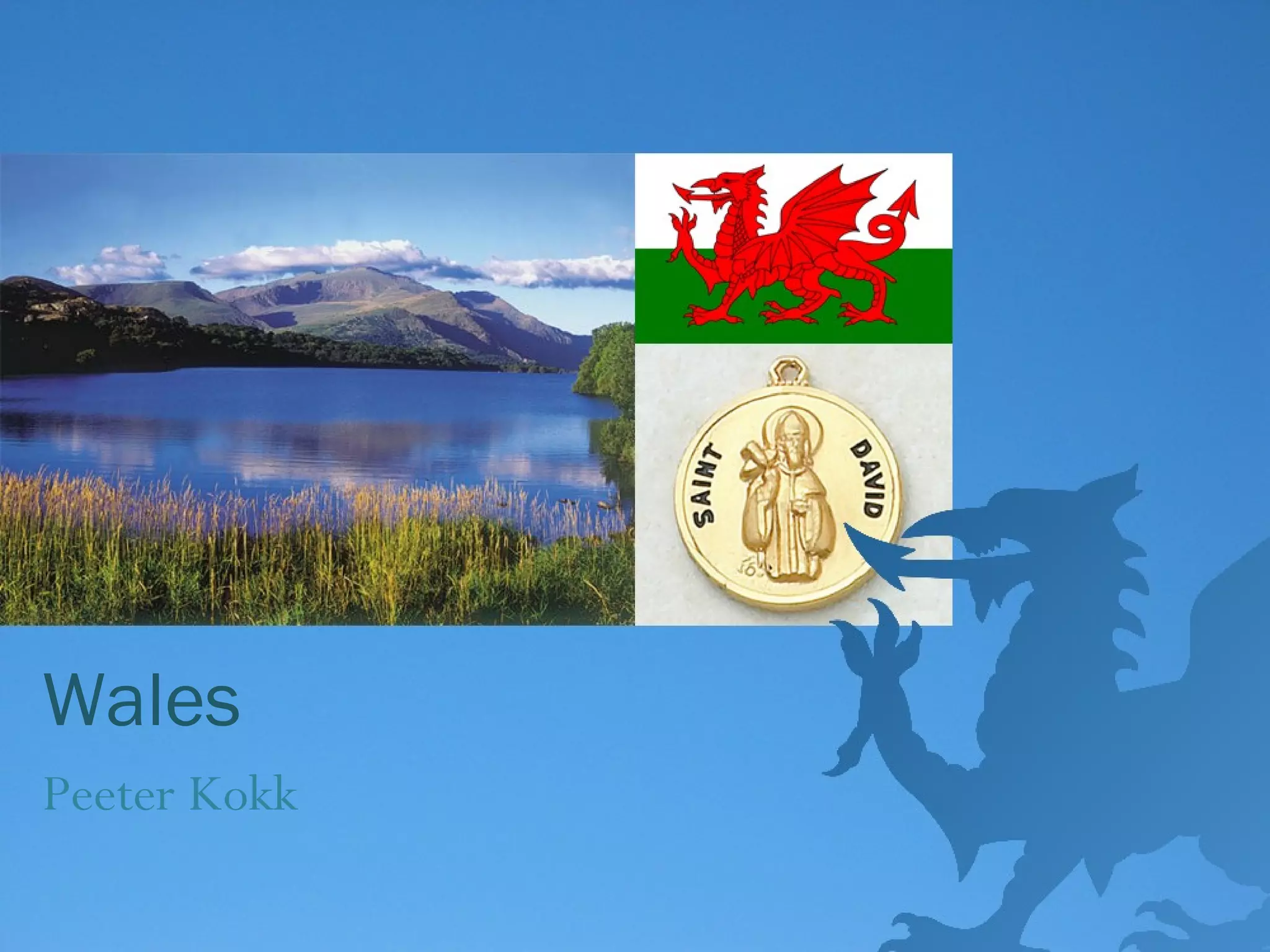 Wales has a population of about 3 million people who primarily speak English and Welsh. Some key facts about Wales are that Cardiff is its capital, St David is the patron saint, and rugby is the national sport. Wales has a long history of being settled by different groups, and was eventually conquered by England in the late 13th century. It gained parliamentary representation in London in 1535 and underwent industrialization in the 18th century centered around coal mining.
