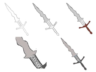 The document describes the process of developing a digital graphic of a sword. It discusses: