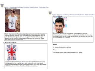 This document contains planning and analysis for a print-based media product by a candidate named Sonu Johny. It includes draft sketches and analysis of front covers and double page spreads, inspiration mood boards, photography plans, prop lists, budgets outlining expected income, expenses, and profit. It also covers topics like house style, fonts, health and safety, intellectual property, legal issues, and meeting learning outcomes and deadlines. The document shows thorough preparation and research was done to produce a print magazine within budget and according to regulatory requirements.
