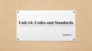 The document discusses codes, standards, specifications, and certification. It defines each term and provides examples. It also discusses related technical terms and verbs often used in standards. Key definitions include: a code is a standard that has become law, a standard defines technical requirements, a specification gives customer requirements, and certification confirms a product meets standards. The document also contains practice exercises matching terms and joining clauses.