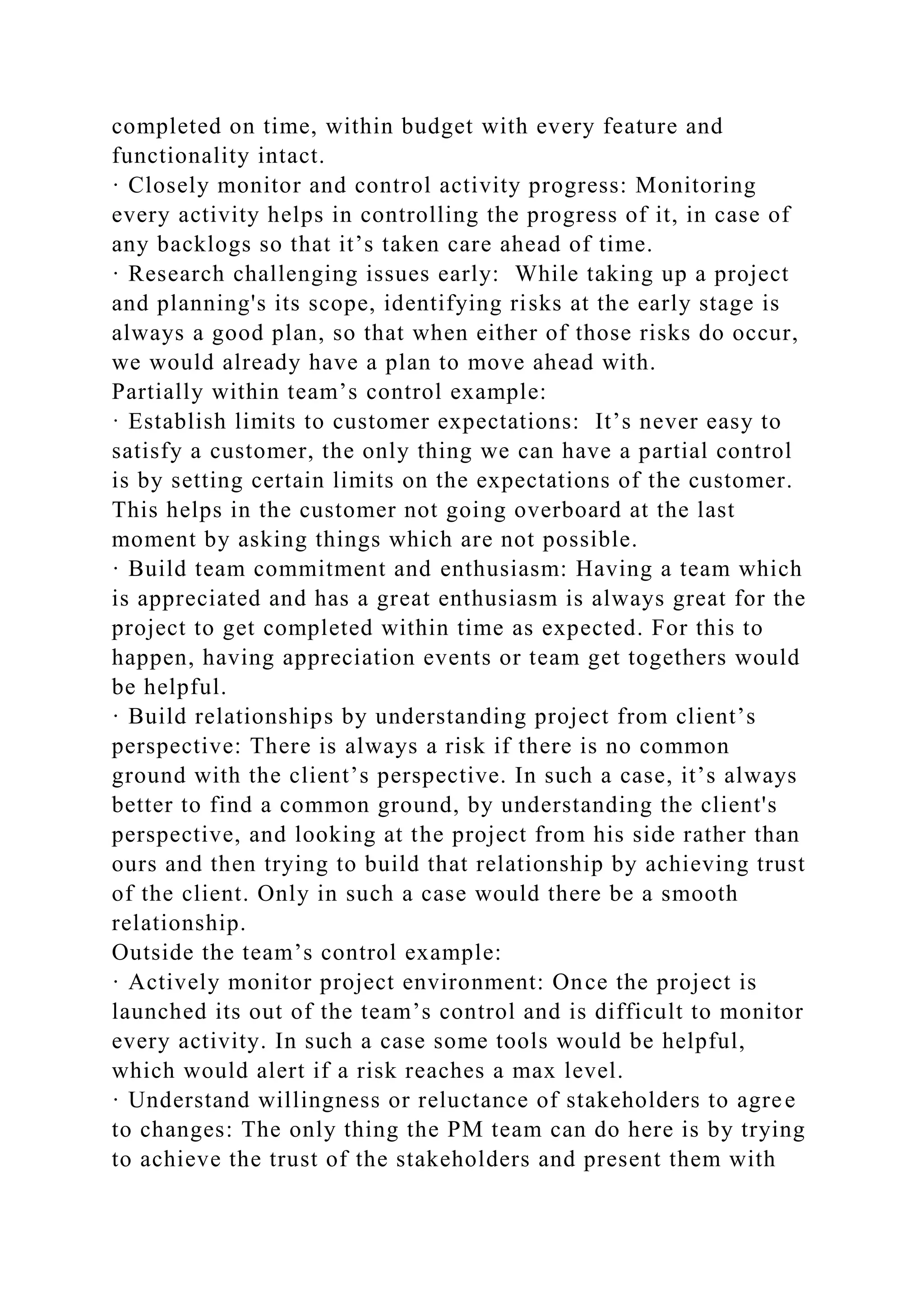 The document discusses project management strategies, emphasizing the use of a balanced scorecard to evaluate project progress across different dimensions like customer satisfaction, internal operations, finance, and growth. It provides insights on controlling project risk factors, utilizing quality control tools, and the importance of communication and stakeholder engagement in project success. Additionally, it highlights the significance of proper project closure processes, even for early terminations, to ensure knowledge retention and post-project evaluations.