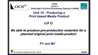 This document outlines the production process and equipment needed to produce a print-based media product. It describes the key stages in the production process from setting a publication date and budget, to deciding content, gathering articles, layout, printing, distribution and final publication. It then provides a list of the major equipment needed like office space, computers, printers, cameras, lighting equipment, paper, ink and office supplies. Costs are provided for each item and the total estimated cost to produce the print magazine is around £94,000.