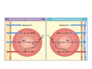 The document summarizes key aspects of the human respiratory system. It describes how respiration provides energy through the consumption of oxygen and production of carbon dioxide. It details the major parts of the human respiratory system including the nose, pharynx, larynx, trachea, bronchi, bronchioles and alveoli. It discusses gas exchange that occurs across respiratory surfaces and properties like permeability, thickness, surface area and blood supply. Finally, it outlines several respiratory disorders like sinusitis, pneumonia, tuberculosis and effects of smoking.