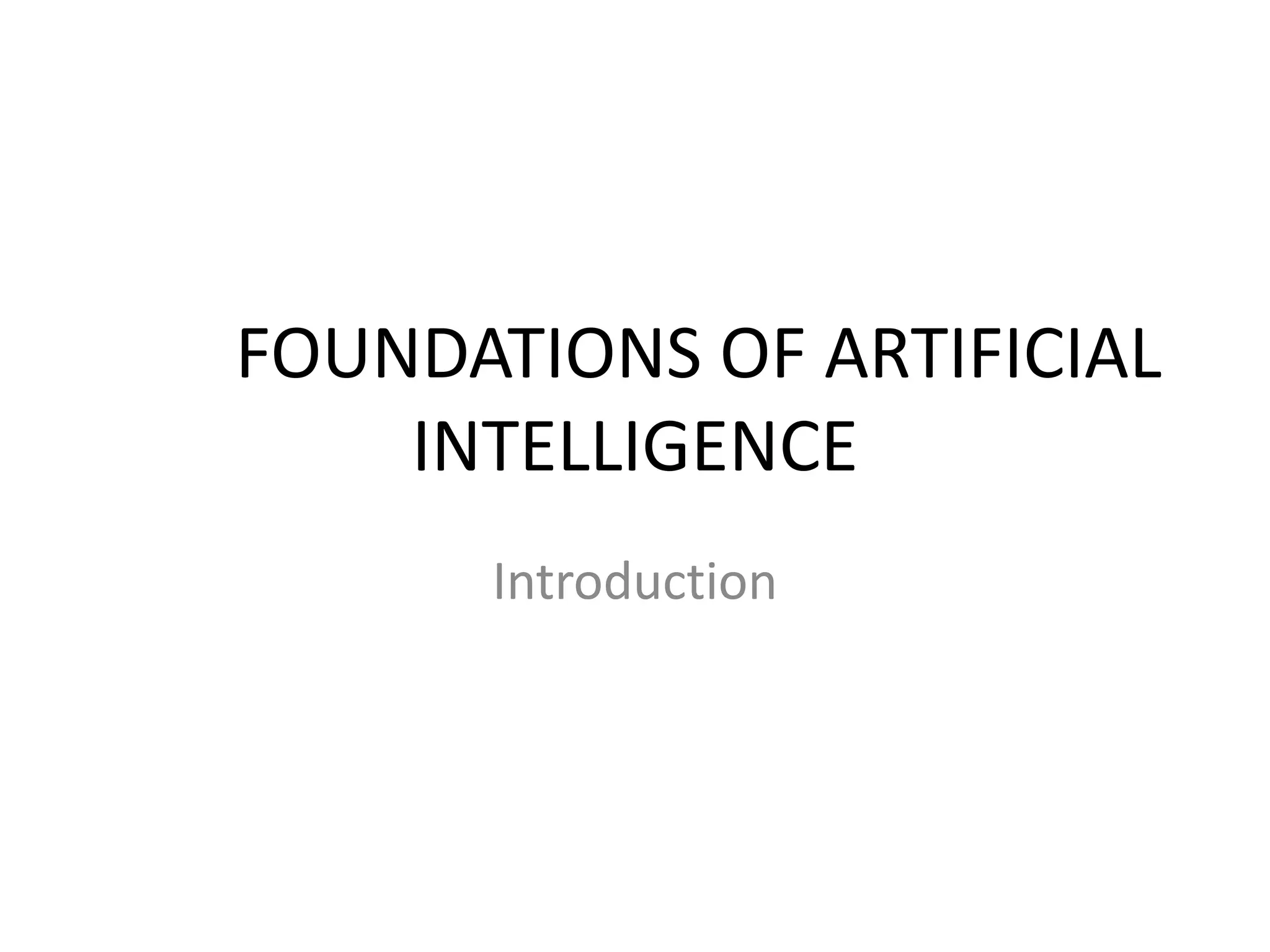 The document provides an overview of foundations of artificial intelligence including definitions of AI, different views of AI, and capabilities required for a computer to pass a total Turing test. It discusses thinking humanly by modeling human cognition and thinking rationally using logic. It describes acting humanly using the Turing test and acting rationally by being a rational agent that takes actions to achieve goals. The document also covers applications of AI, types of environments and agents, and different approaches to machine learning including reflex agents, model-based agents, goal-based agents, and utility-based agents.