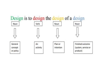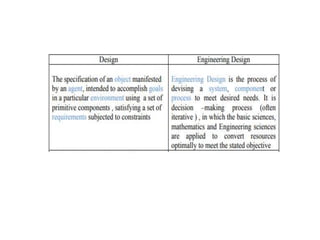 The document provides an extensive overview of design thinking, highlighting its role as a systematic and collaborative approach to problem identification and creative solution development. It contrasts design thinking with engineering and methodologies like agile and lean, emphasizing its iterative nature and focus on user-centered solutions to complex 'wicked problems.' Additionally, it outlines the phases of design thinking and its applications in new product development, underscoring the benefits of combining various methodologies for effective problem-solving.