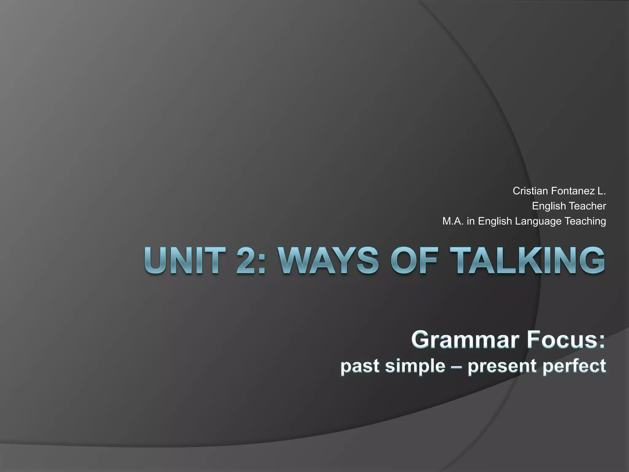 The document is a summary of the past simple and present perfect tenses in English. It explains that the past simple is used for completed past actions and events, formed with regular verbs adding "-ed" and irregular verbs changing form. The present perfect connects the past to the present, formed with "have/has" and a past participle. It provides examples of each tense and contrasting time expressions used with each.