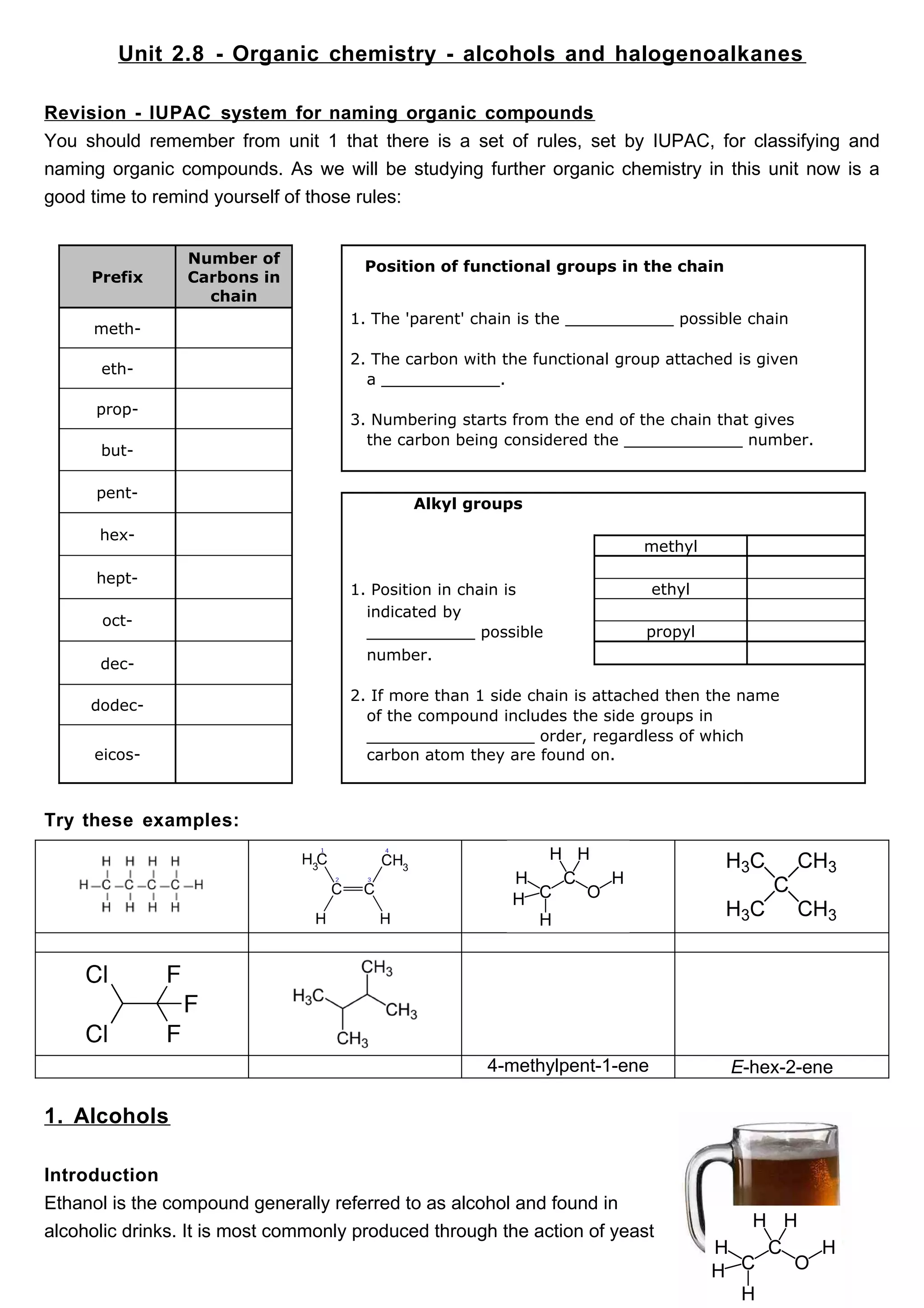 1. The IUPAC system for naming organic compounds and provides examples of naming alcohols and halogenoalkanes.