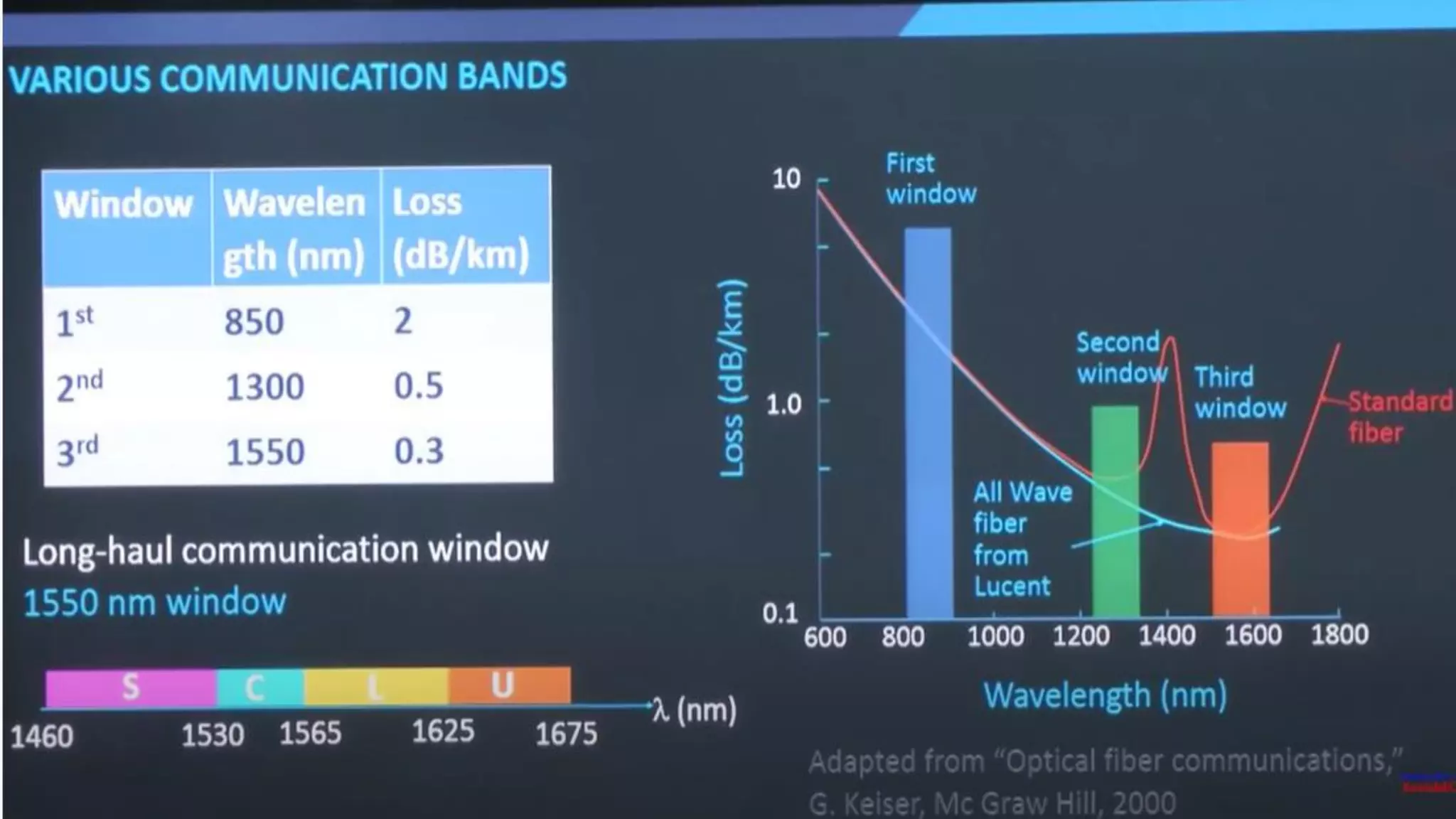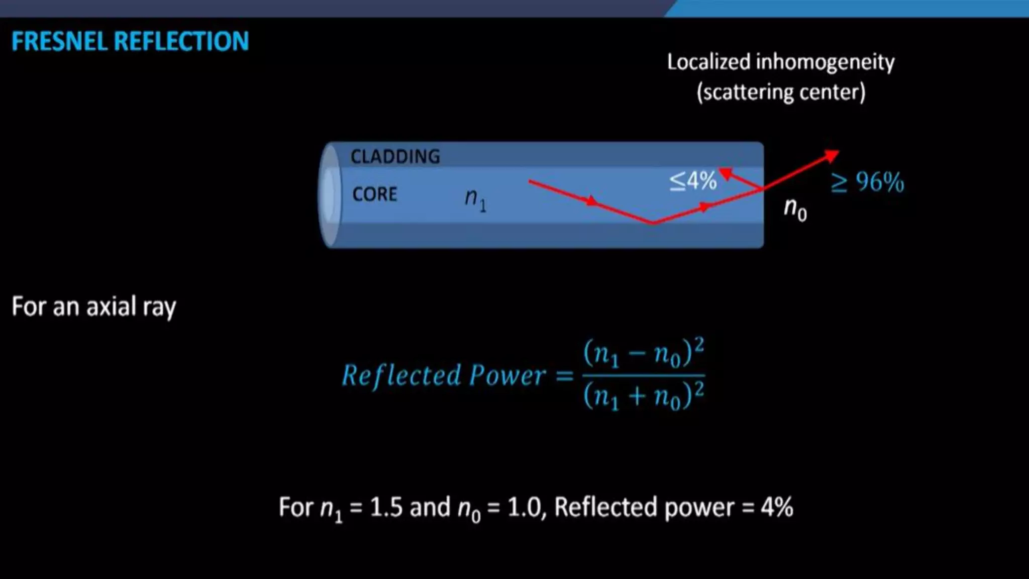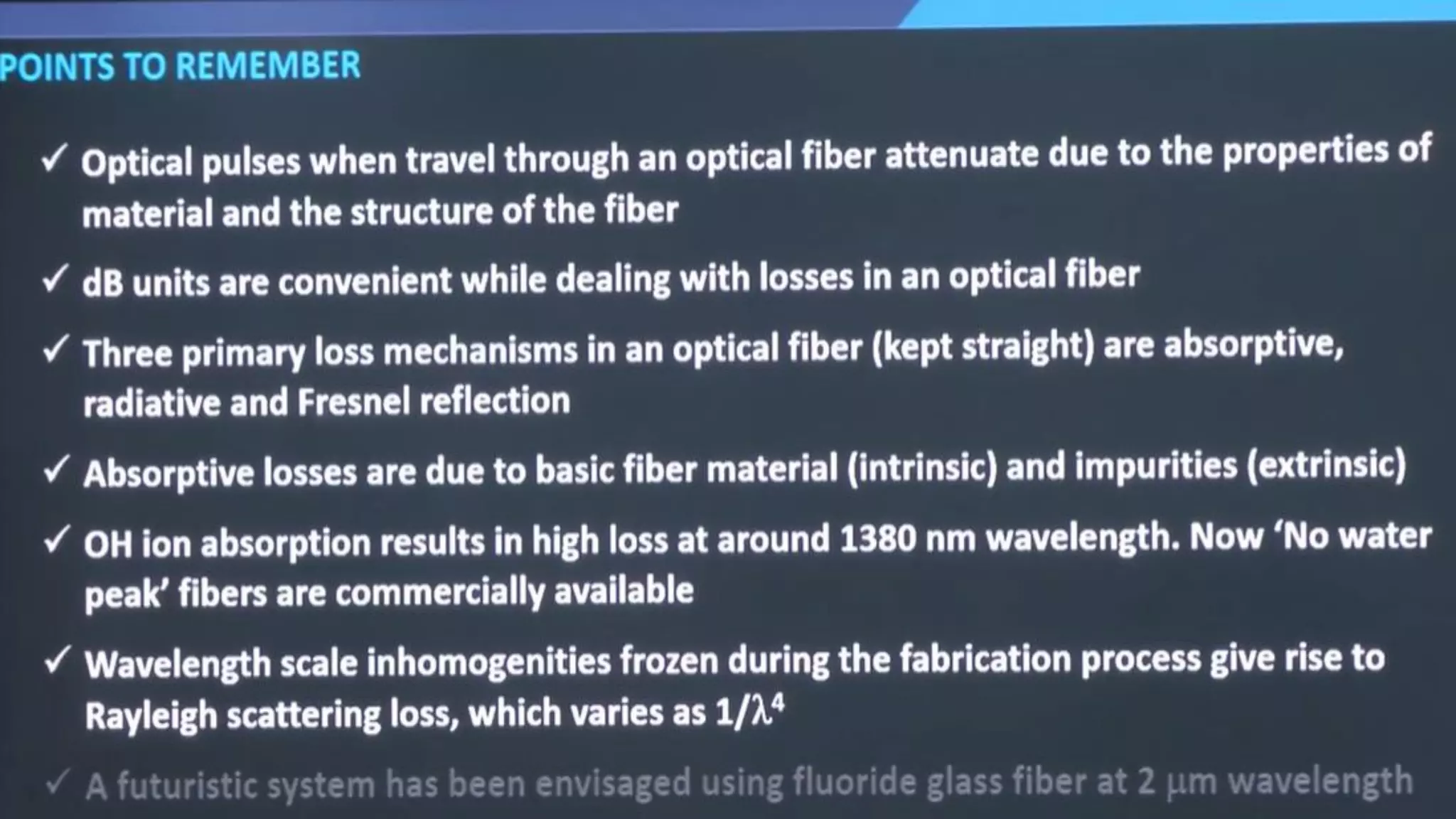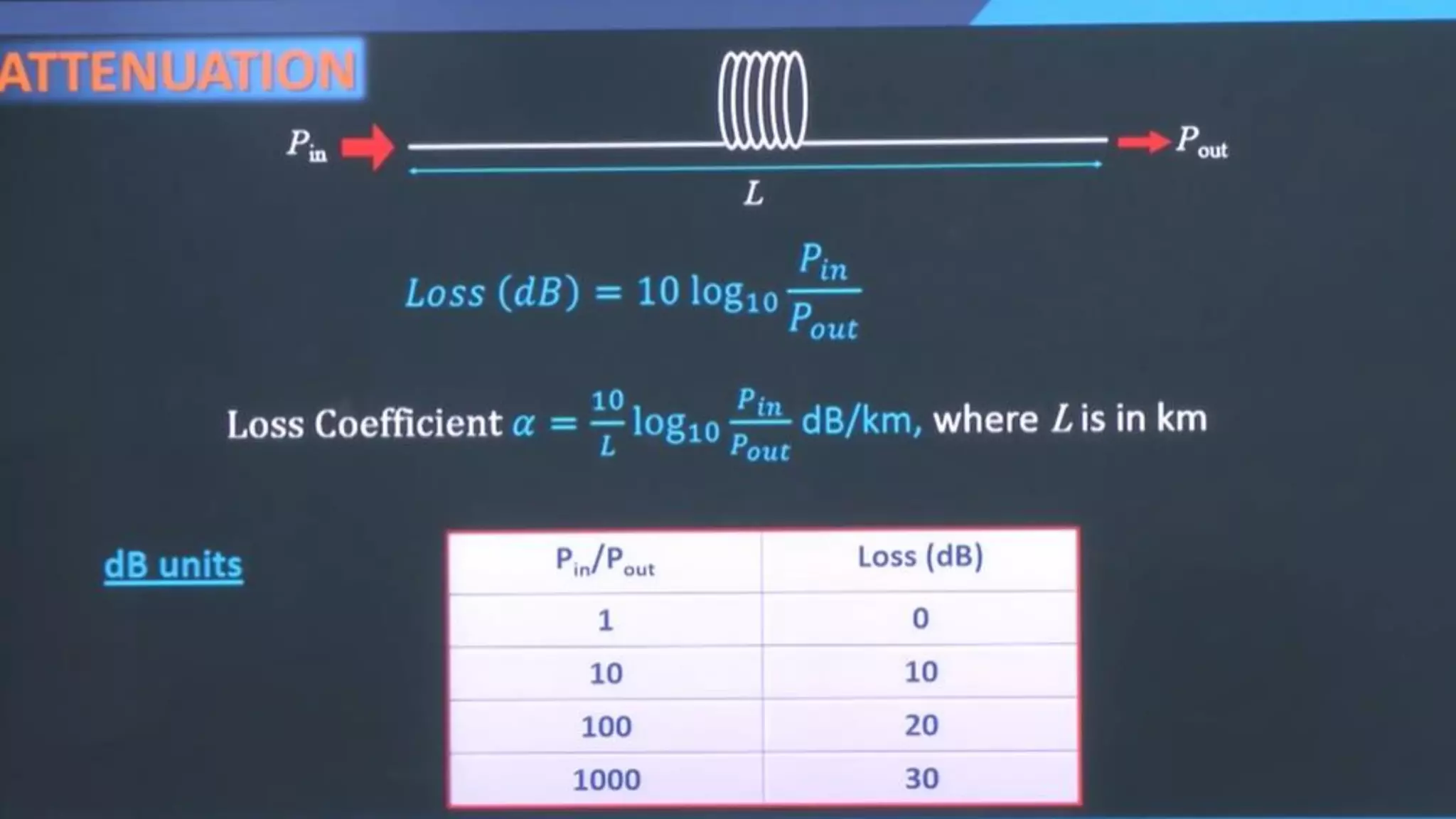 The document discusses two types of bending loss that can occur in optical fibers: macroscopic bending, which occurs when a fiber is bent with a radius larger than the core radius, and microbending, which is minimized by using a protective jacket around the fiber. It also mentions several factors that contribute to bending loss, such as the attenuation constant, radius of curvature, number of guided modes, and core and cladding properties between step index and graded index fibers that determine the loss experienced by each mode.