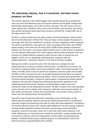 1) The UK advertising industry is very successful and contributes over £120 billion to the economy annually. It employs hundreds of thousands of people in diverse roles across many sectors like television, film, and marketing.