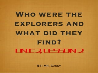 1) The document discusses several early Spanish explorers including Columbus, Balboa, Cortes, and Pizarro and their discoveries in the Americas.