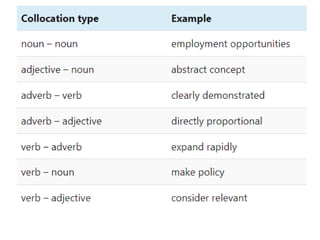1 collocations: wordsthat occur together, often with verb