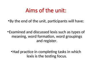 lexis is the testing focus.