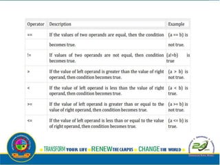 - Operators like arithmetic, comparison, and logical operators are used to manipulate values.